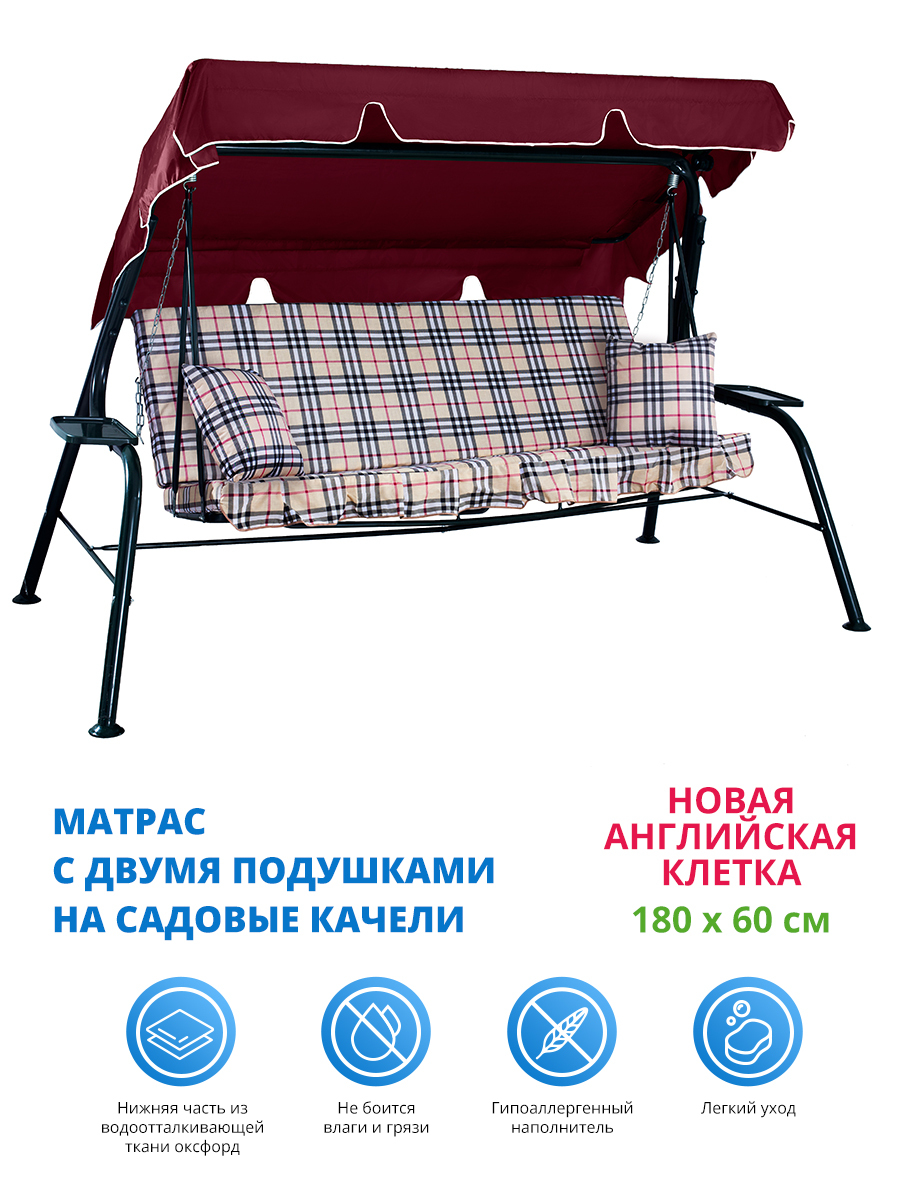 Матрас для качелей, Подушка для качелей 60х180 см, Качели и дача