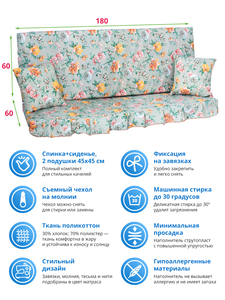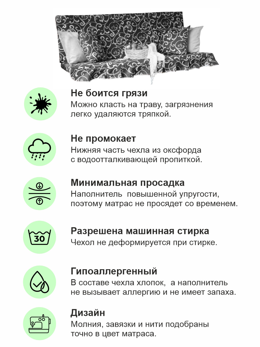 Матрас для качелей, Подушка для качелей 60х180 см, Качели и дача