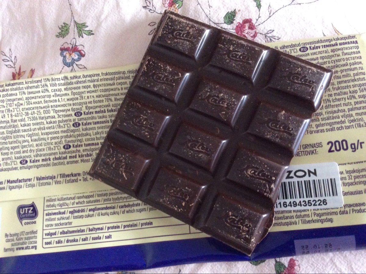 Шоколад Kalev темный с кусочками вишни 200г (Эстония)