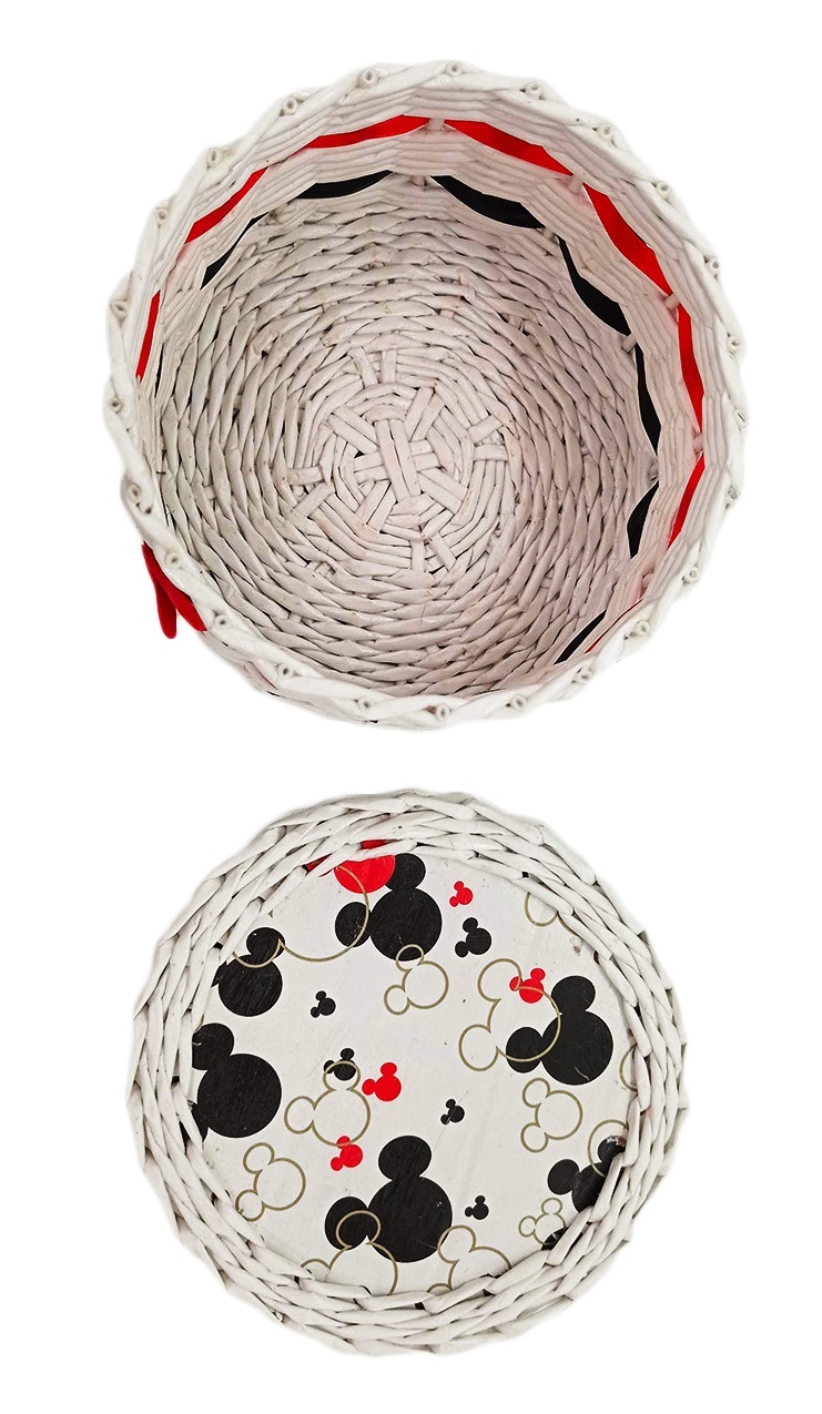 Шкатулка из бумажной лозы Микки круглая корзина 18 см (ручная работа)