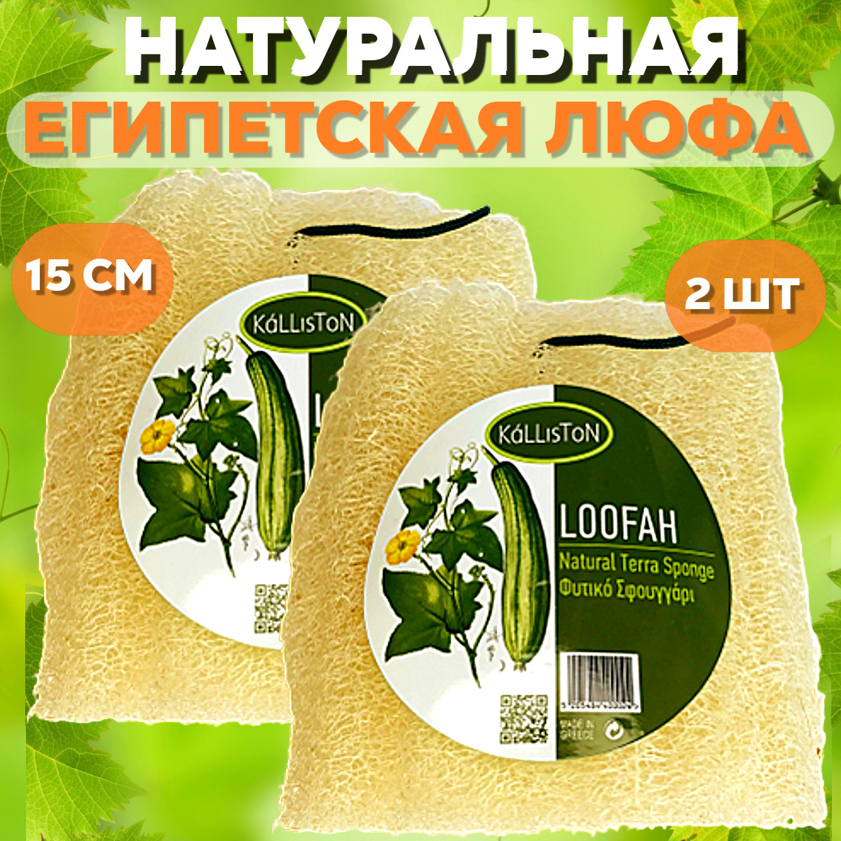 KALLISTON Мочалка из ЕГИПЕТСКОЙ ЛЮФЫ 15см. 2 шт. Греция (о. Крит) натуральная массажная для тела