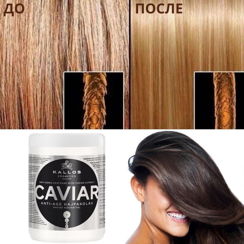 Kallos Cosmetics "CAVIAR" маска для восстановления и улучшения роста волос с экстрактом из икры +подарок