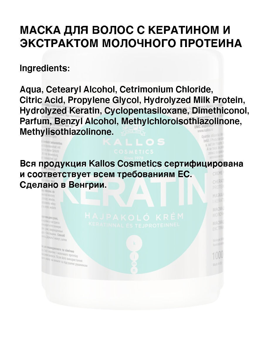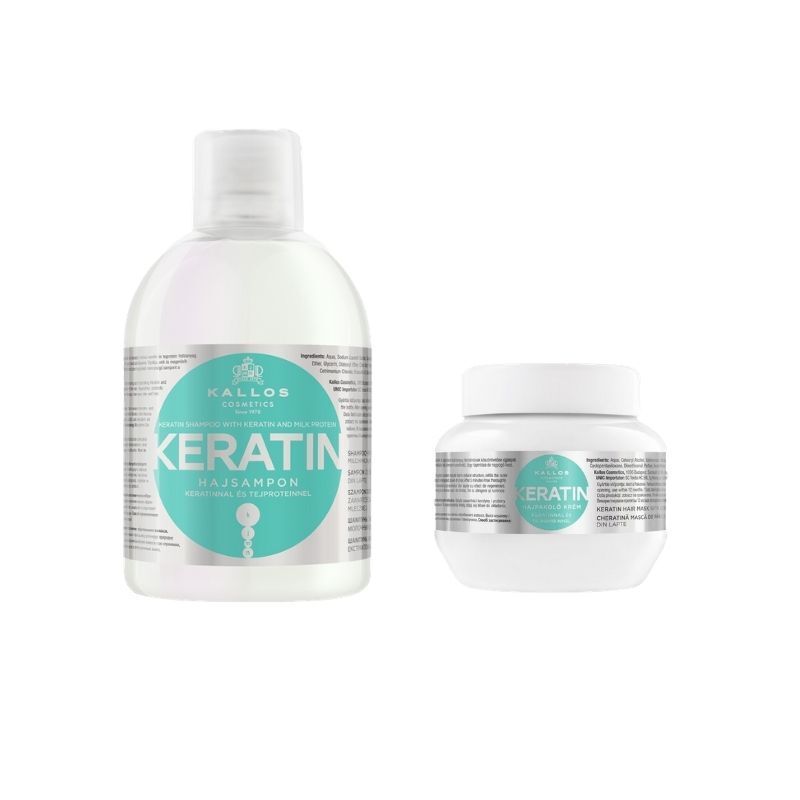Kallos cosmetics "KERATIN"набор шампунь и маска для волос с кератином и молочным протеином , увлажняющий