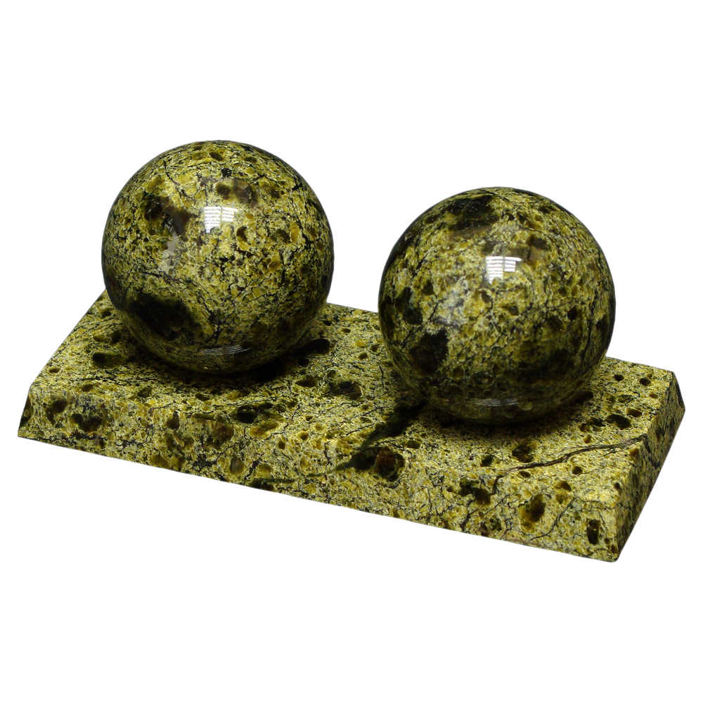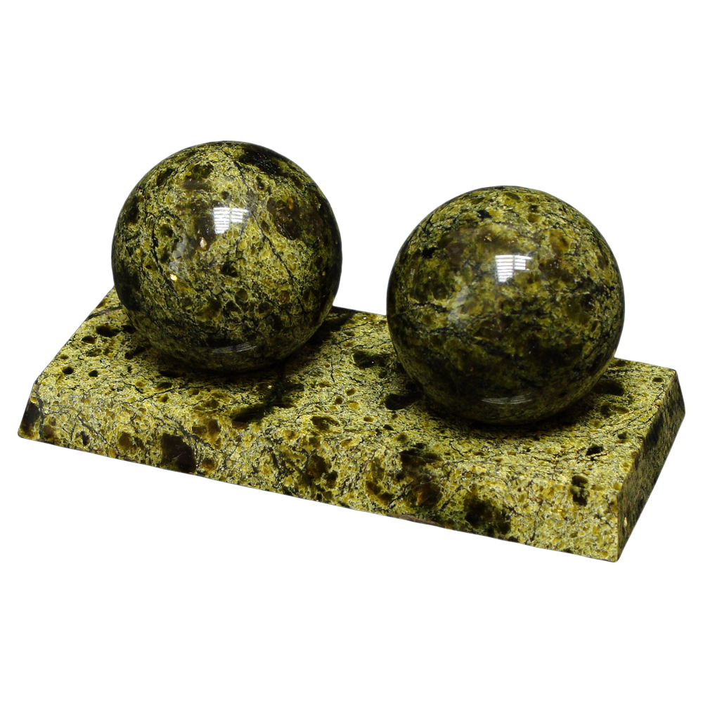 Массажный шар из Баженовского змеевика. Комплект двух шаров на подставке