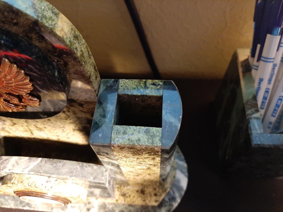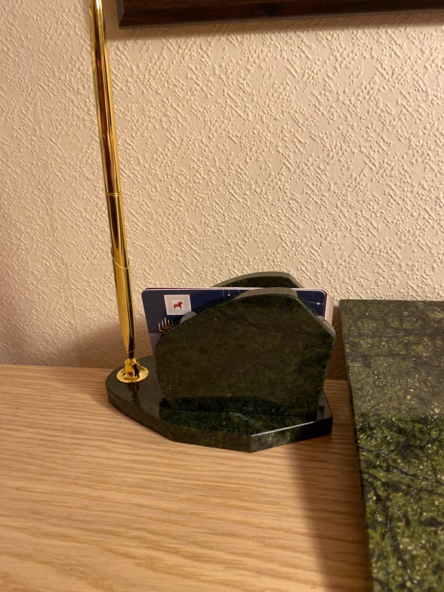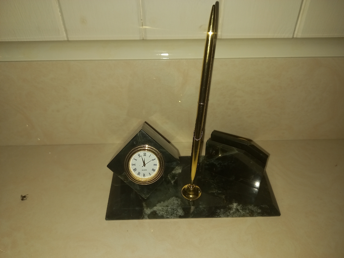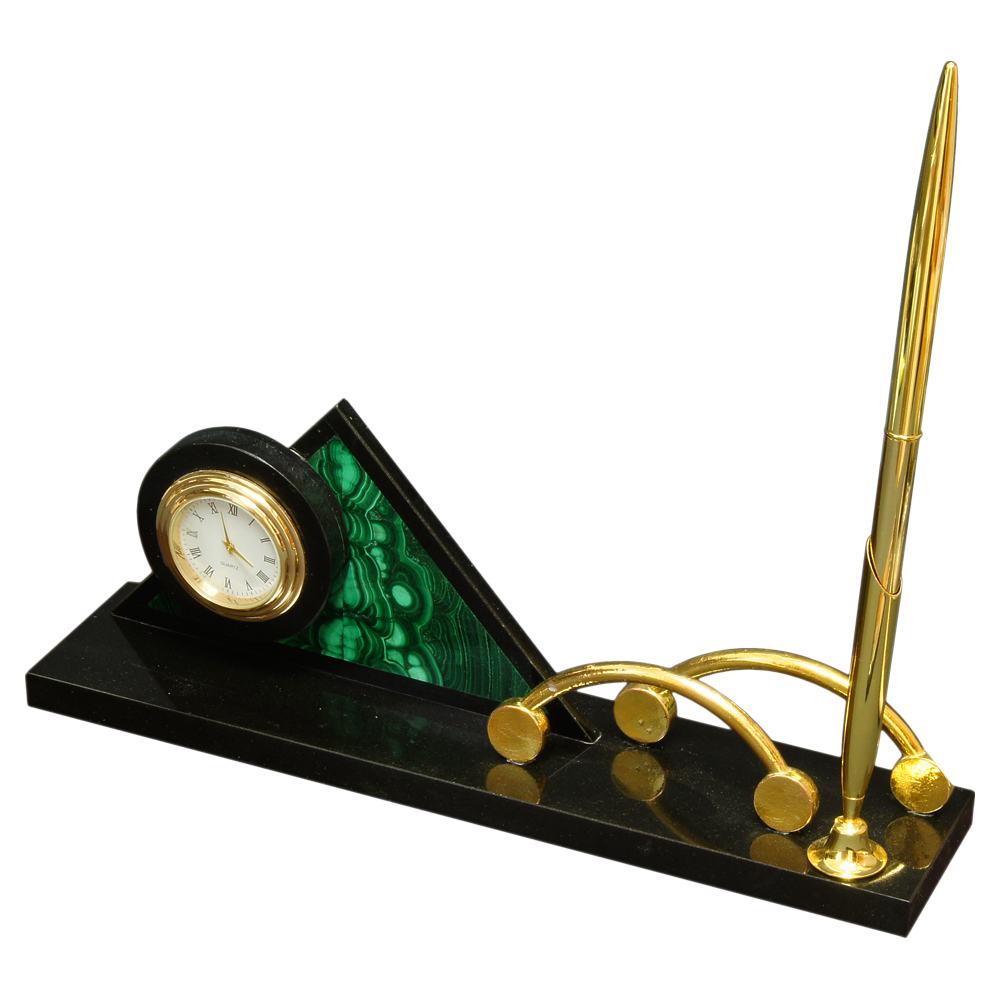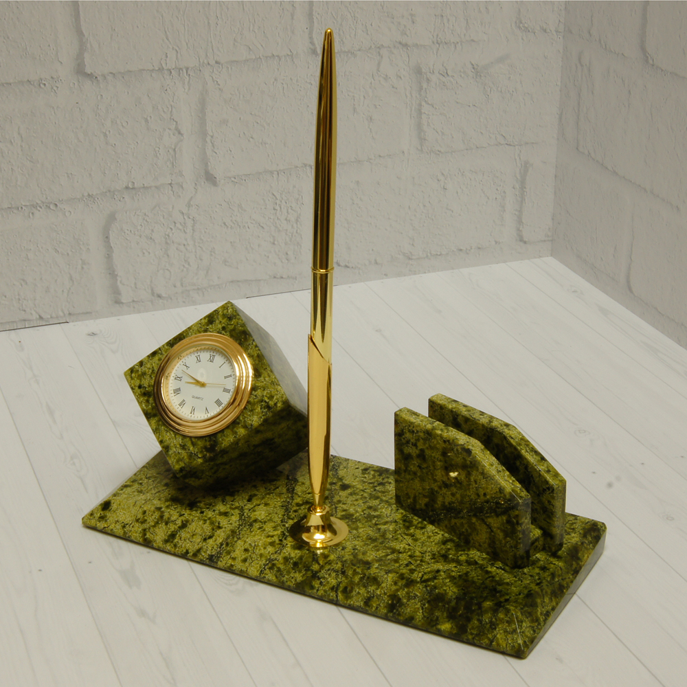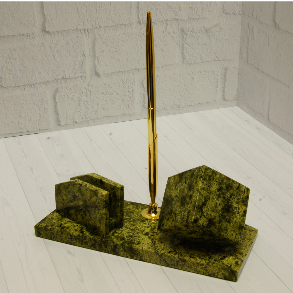 Настольный набор "Мини" из уральского камня змеевик с ручкой