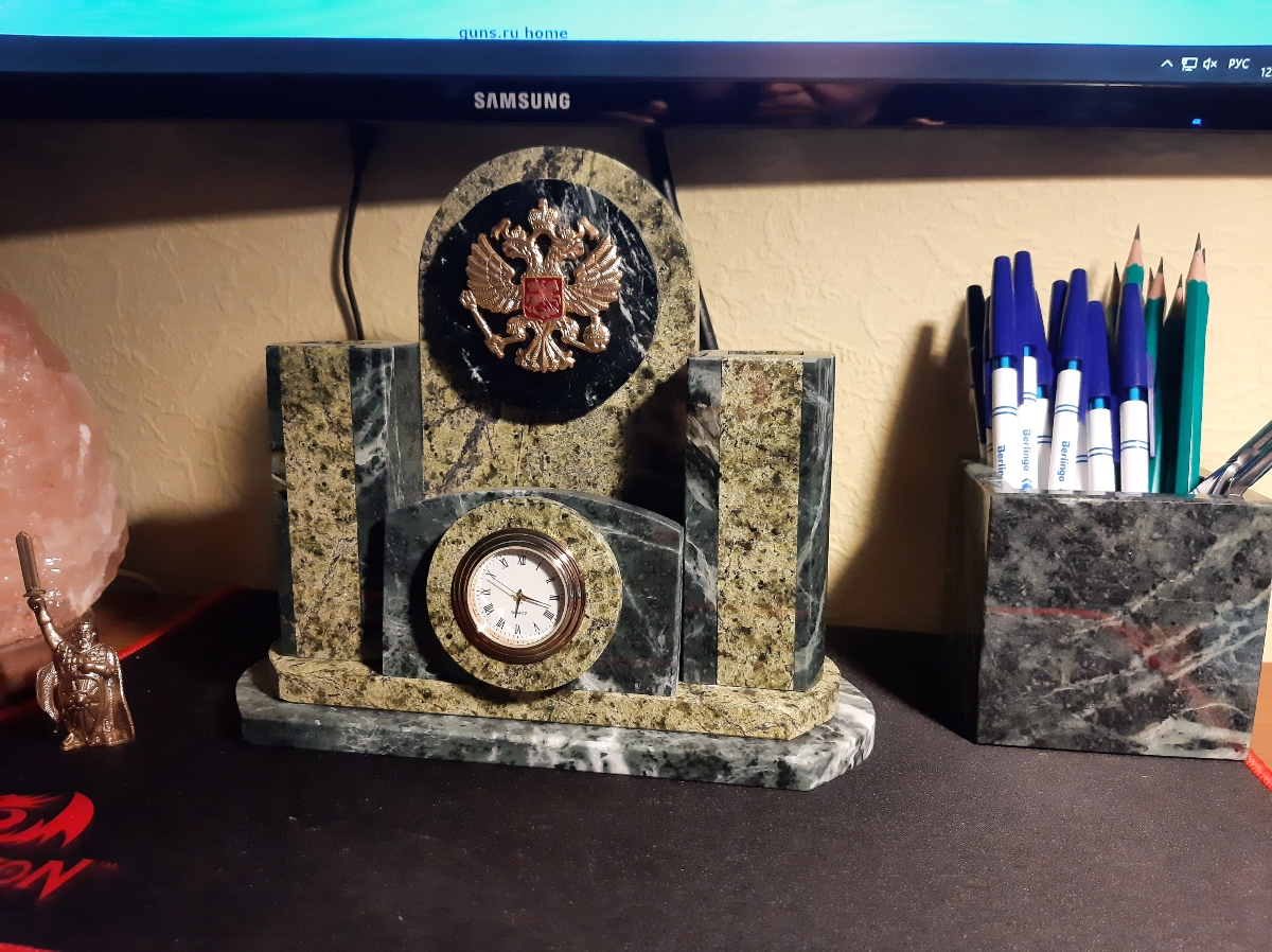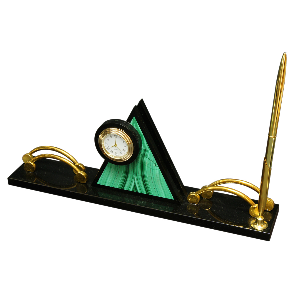 Письменный набор из уральского камня змеевик с двумя ручками "Пионер"