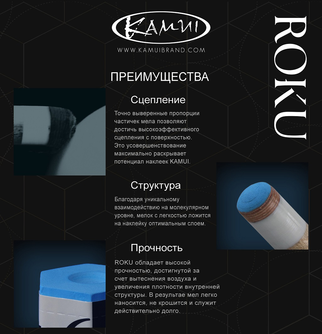 Мел для бильярда Камуи Року / Kamui Roku Sky Blue 1шт.