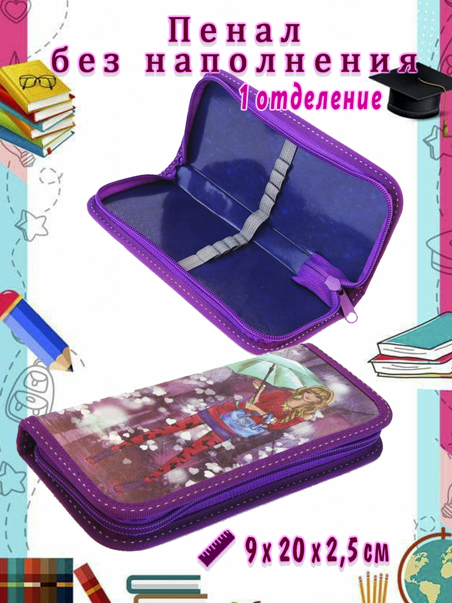 Пенал 1 отделение метал.объем 818834 Привет Париж, ткань, на молнии, цвет фиолетовый