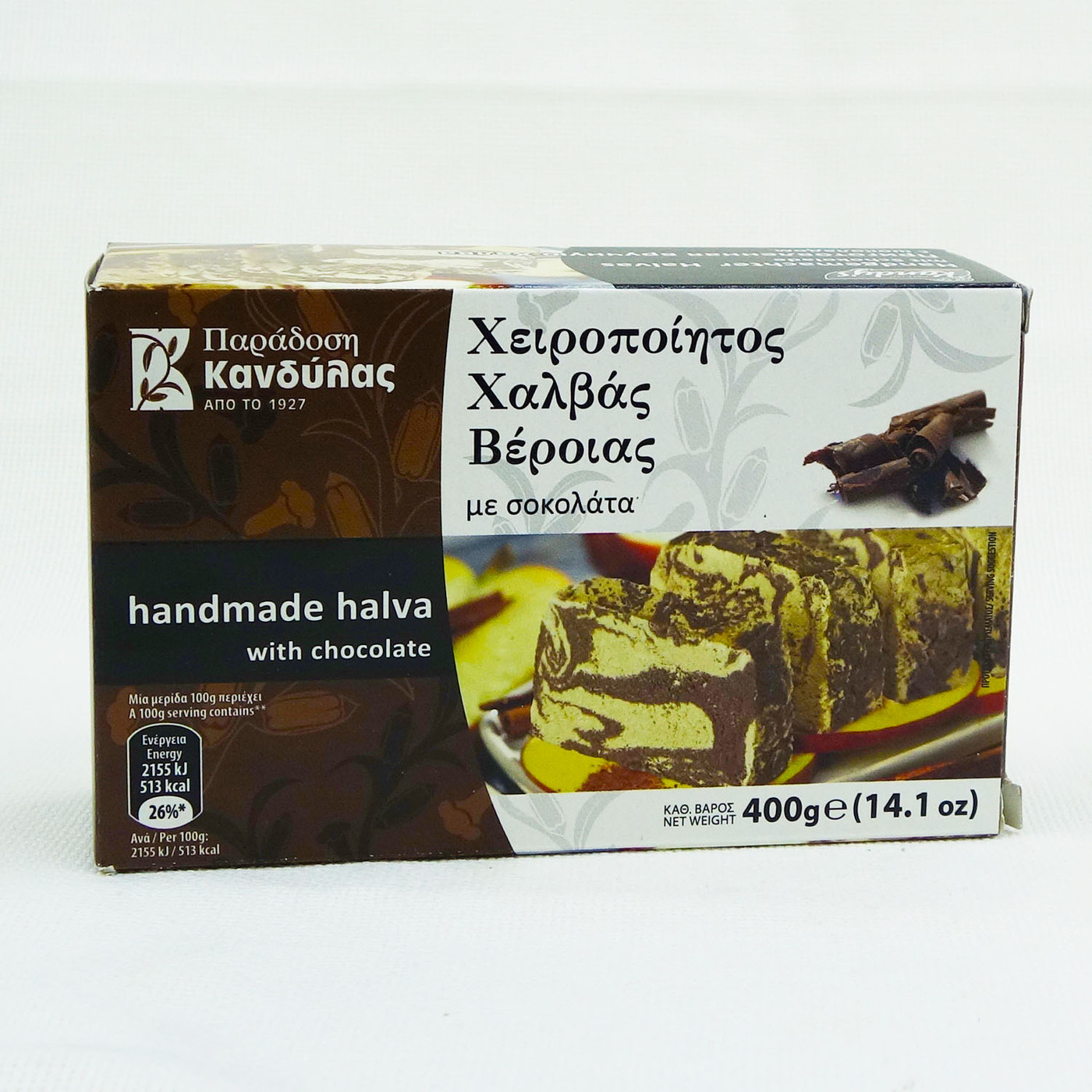 ХАЛВА КУНЖУТНАЯ С ШОКОЛАДОМ KANDYLAS, ГРЕЦИЯ, 400Г