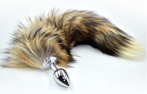 Анальная пробка Kanikule Серебристая из нержавеющей стали с коричнево-бежевым хвостом, 30 мм