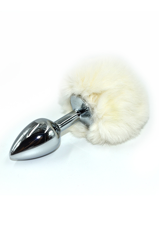 Анальная пробка Kanikule small с белым хвостиком, серебристый, белый, 30 мм