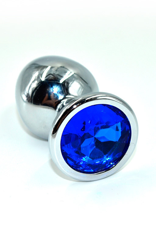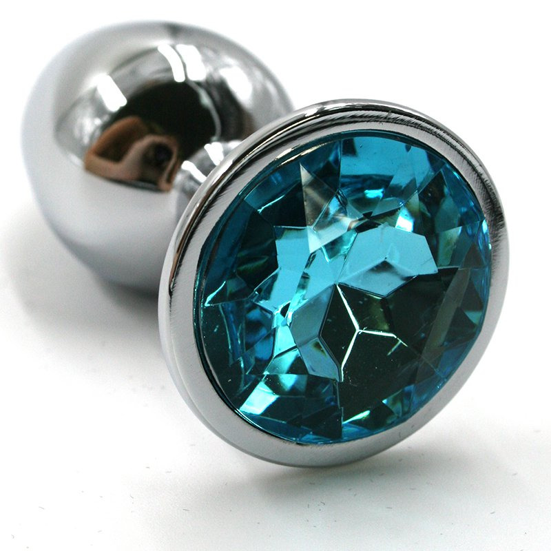 Анальная пробка Kanikule SMALL С КРИСТАЛЛОМ – СЕРЕБРИСТЫЙ С ГОЛУБЫМ, серебристый, голубой, 28 мм
