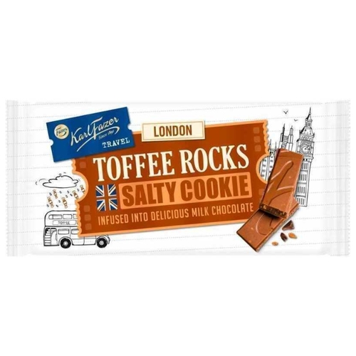 Шоколад Karl Fazer Travel London молочный с соленым печеньем с какао и кусочками карамели
