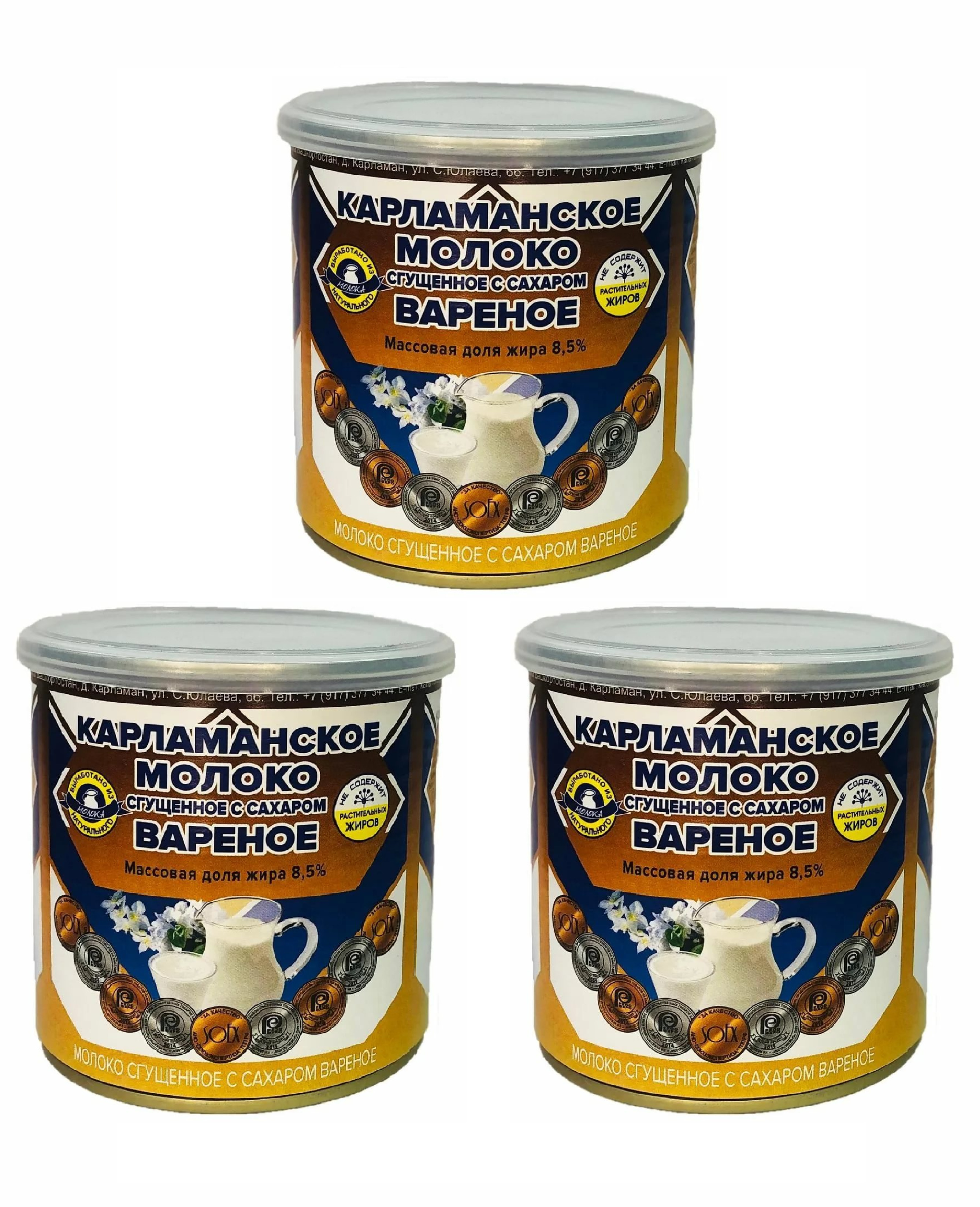 Карламанское сгущенное молоко с сахаром вареное 8,5%, 380г. ГОСТ 33921-2016 (набор из 3шт.)