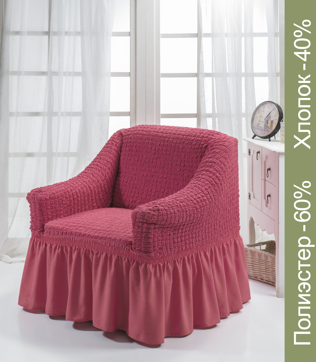 Чехол на кресло, однотонный с оборкой, Bulsan, накидка для кресла, бордовый