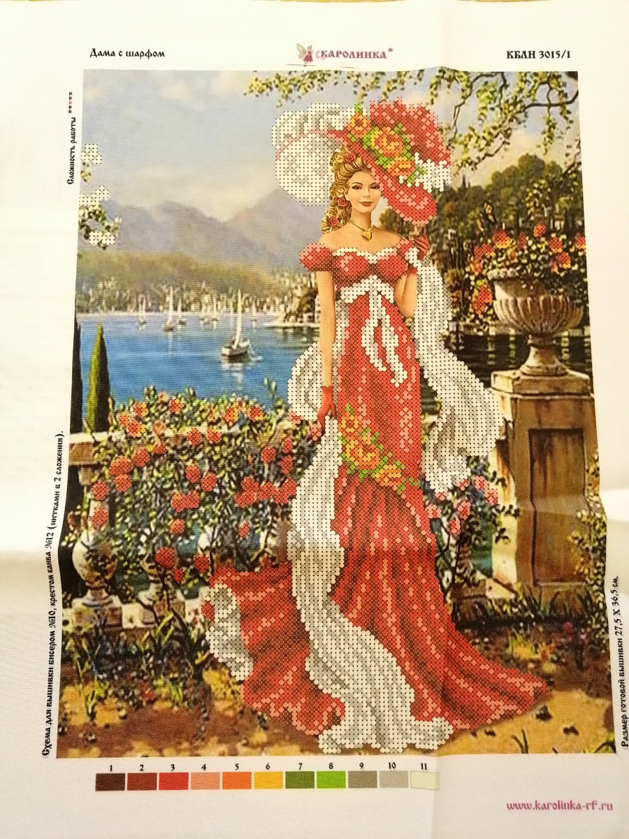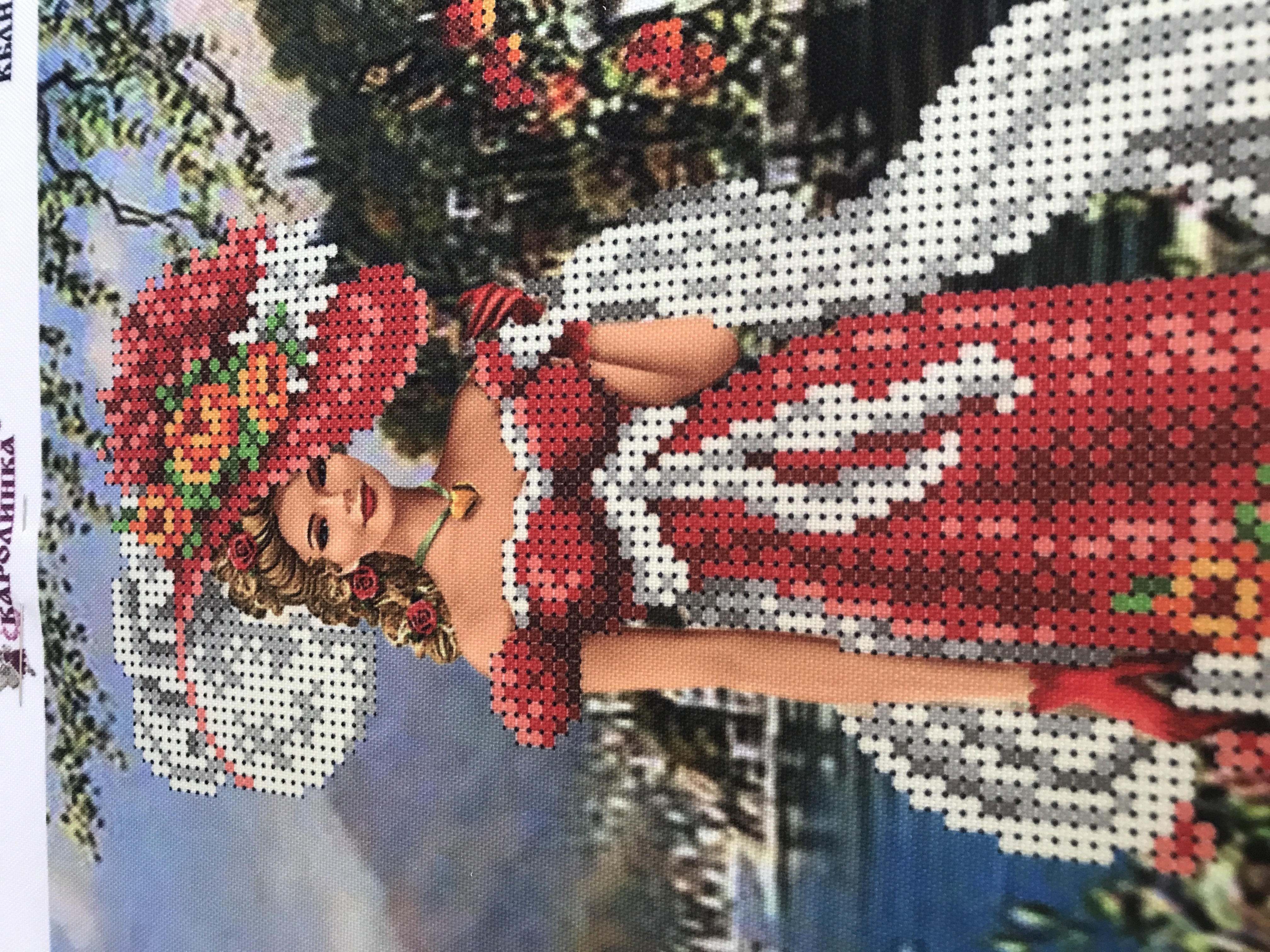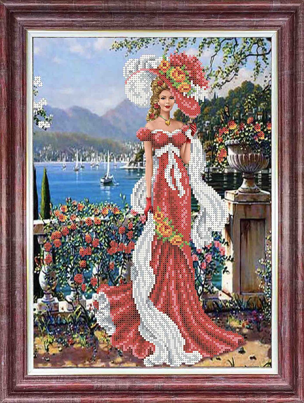 "Дама в красном"(цена производителя). Набор для вышивания бисером КАРОЛИНКА27х37см