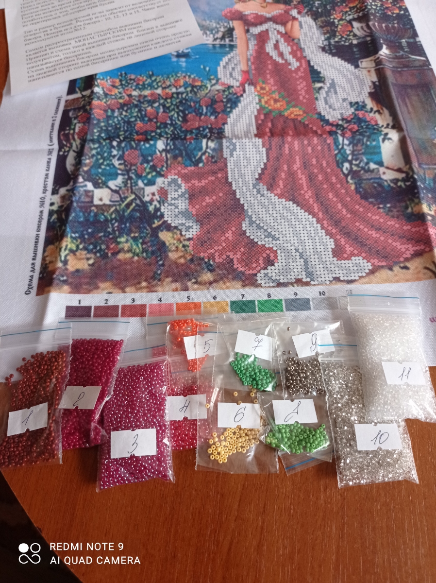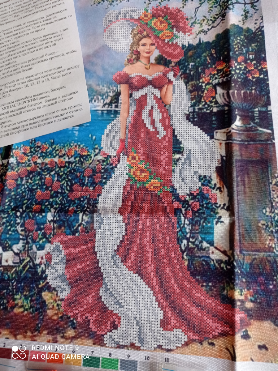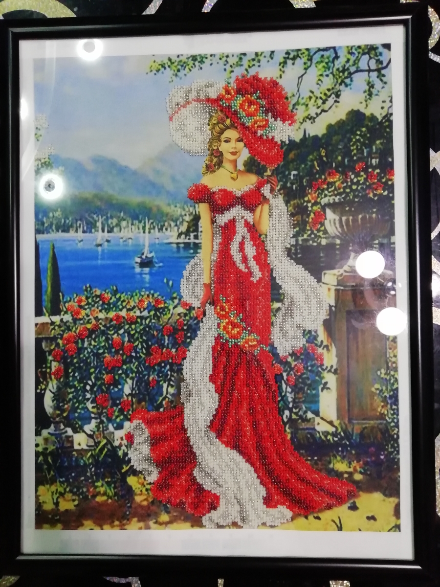 "Дама в красном"(цена производителя). Набор для вышивания бисером КАРОЛИНКА27х37см