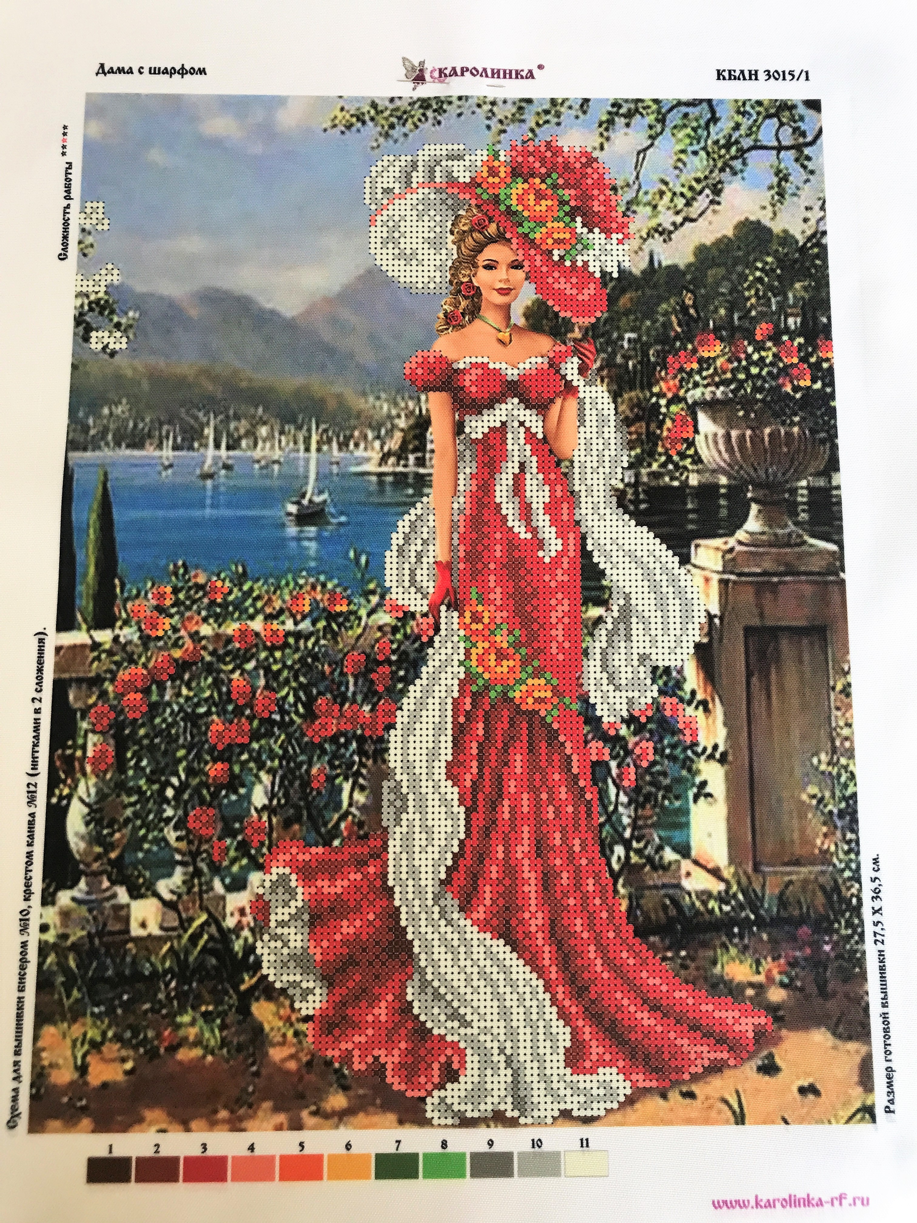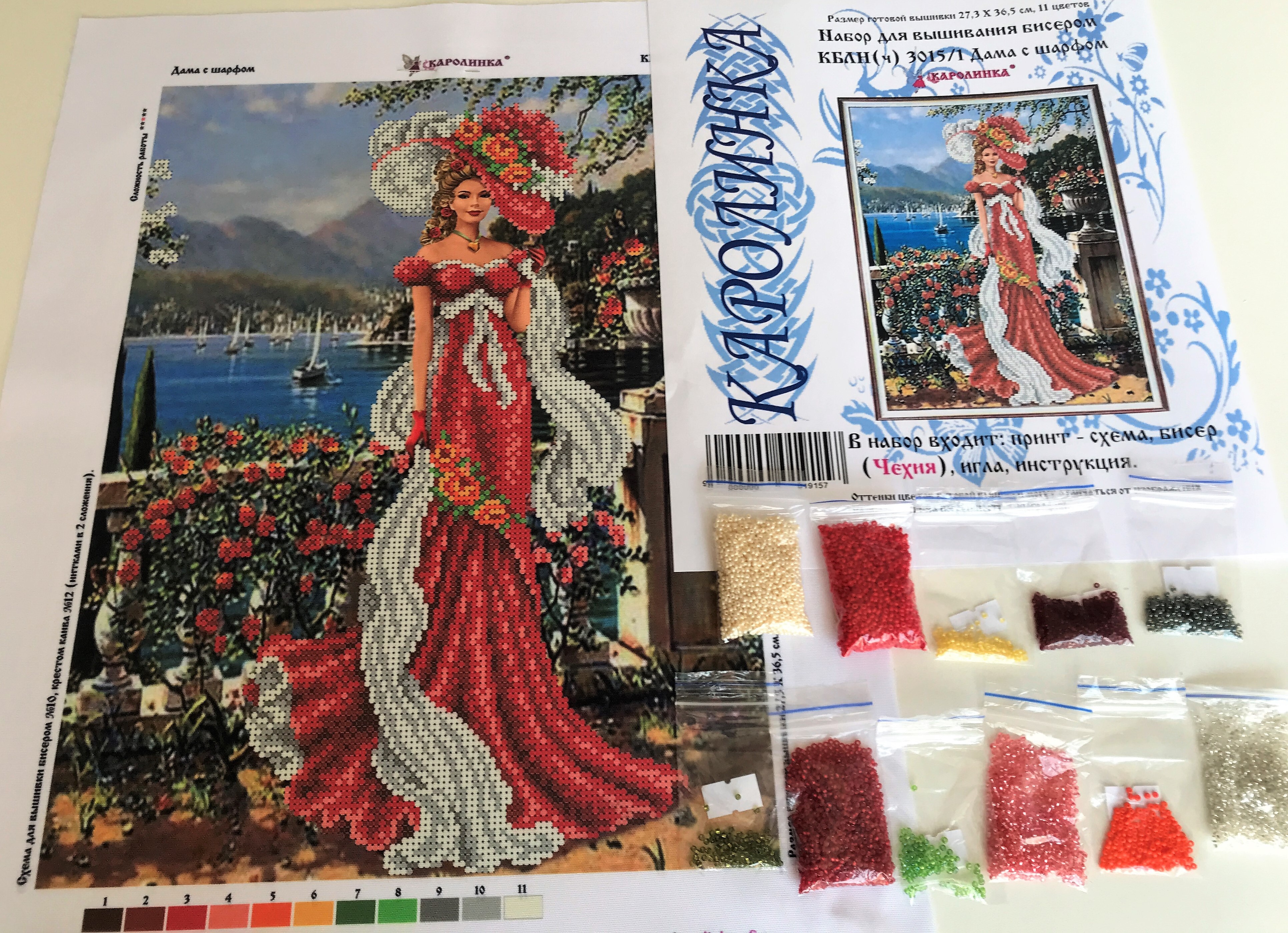 " Дама с шарфом"(цена производителя). Набор для вышивания бисером КАРОЛИНКА27х36см