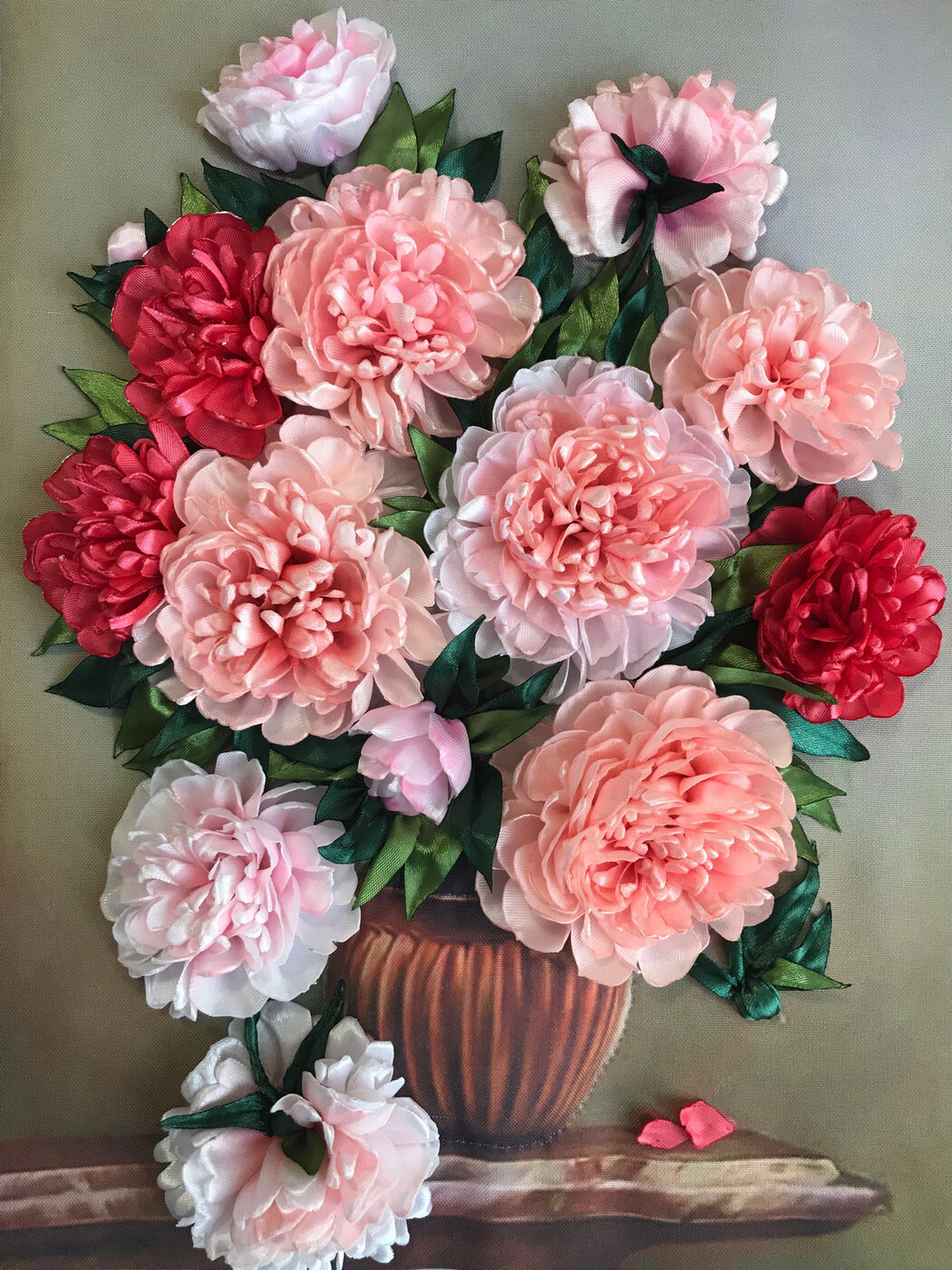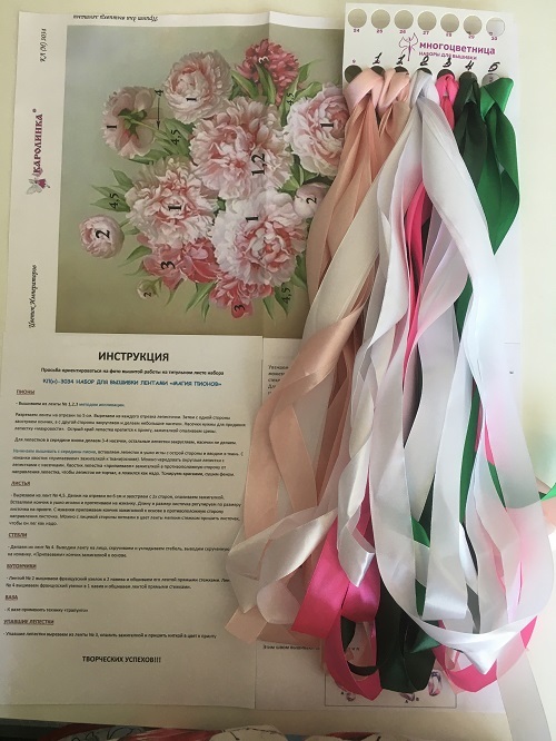 "Магия пионов"(цена производителя).Набор для вышивки лентами КАРОЛИНКА
