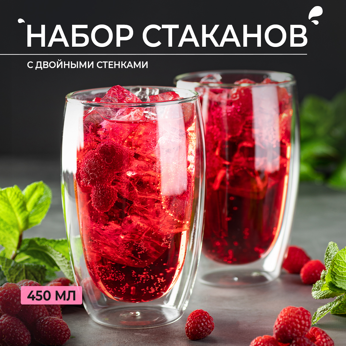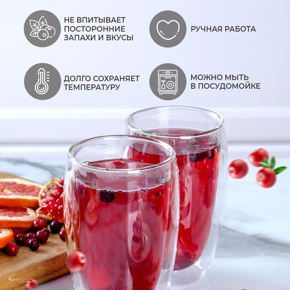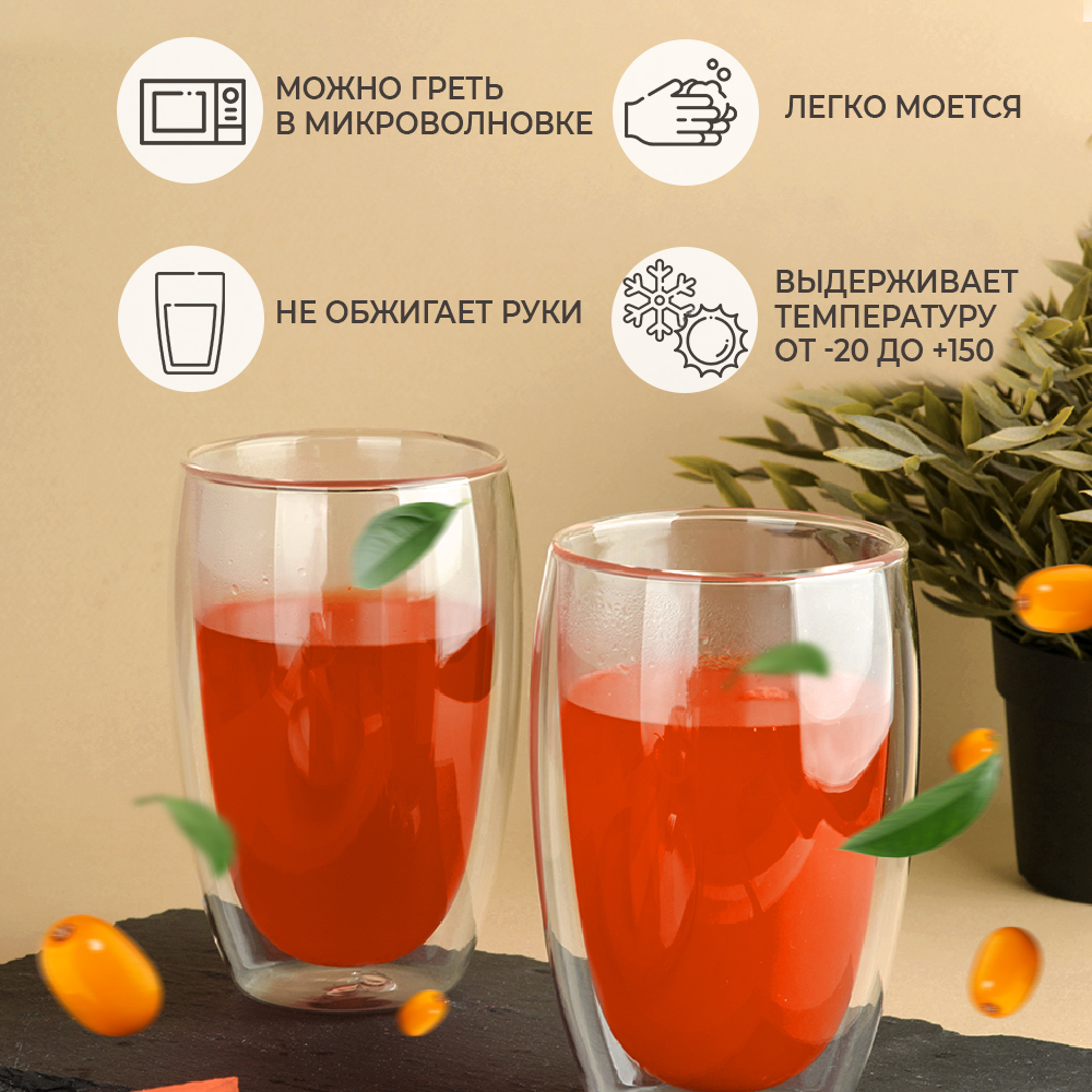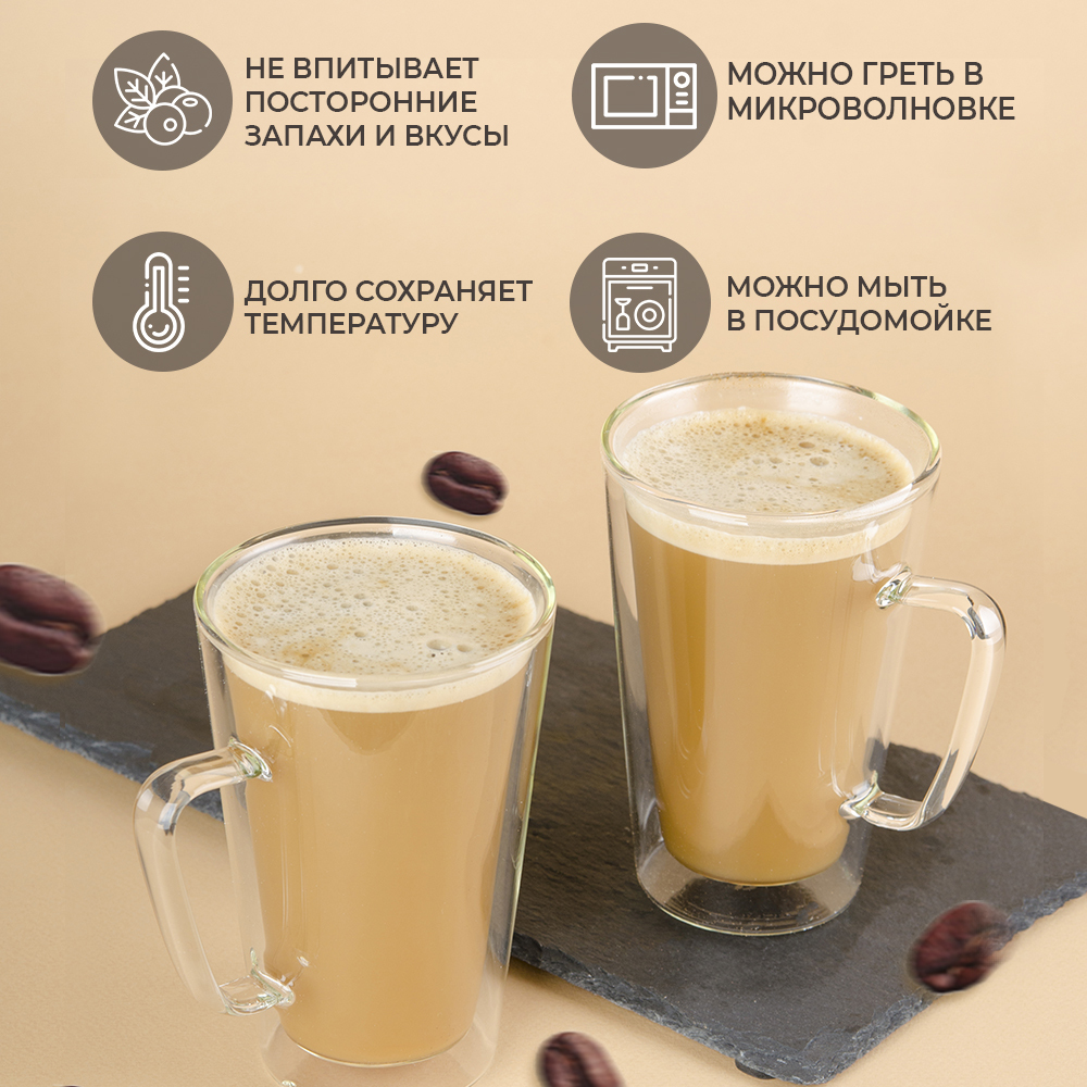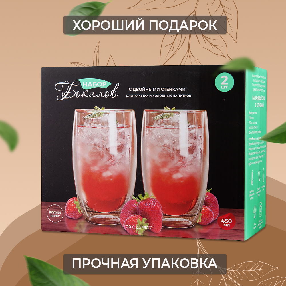 Набор бокалов 450 мл с двойными стенками для горячих и холодных напитков