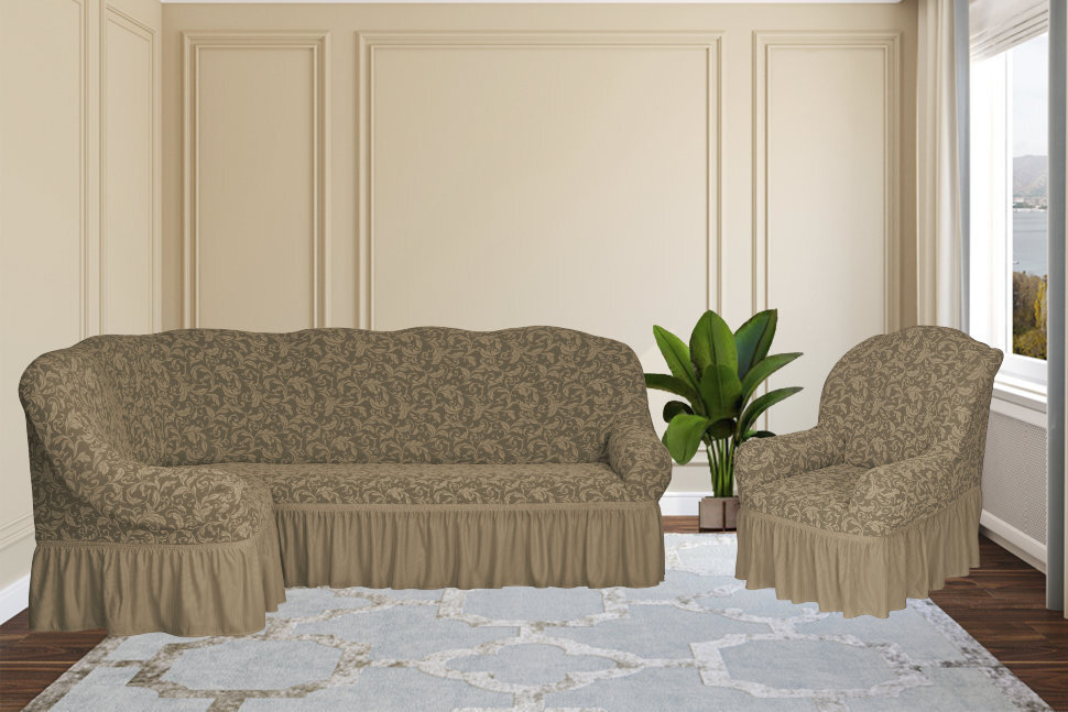 Чехол на угловой диван и кресло "KARTEKS" без оборки Цвет Песочный