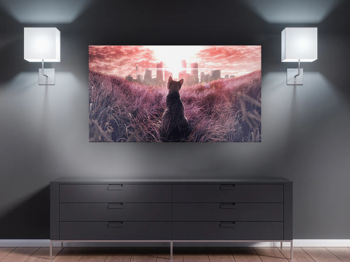 Кот в большом городе, Картина на холсте / Картина интерьерная / 70х40 см