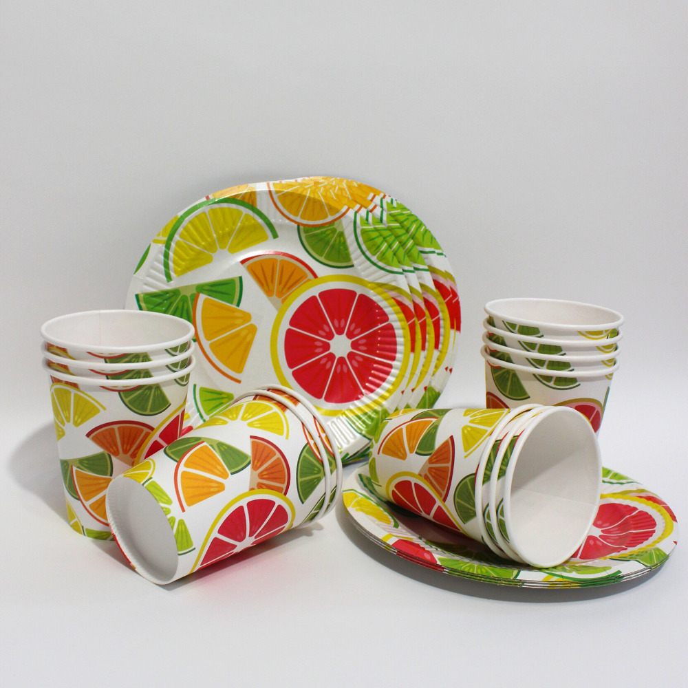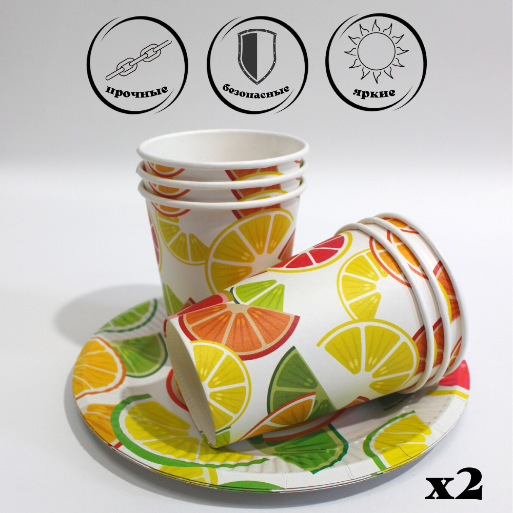 Набор одноразовых тарелок "солнышко" 50шт, Крафт 220мм по 25шт, Вальс цветов 190мм по 25шт