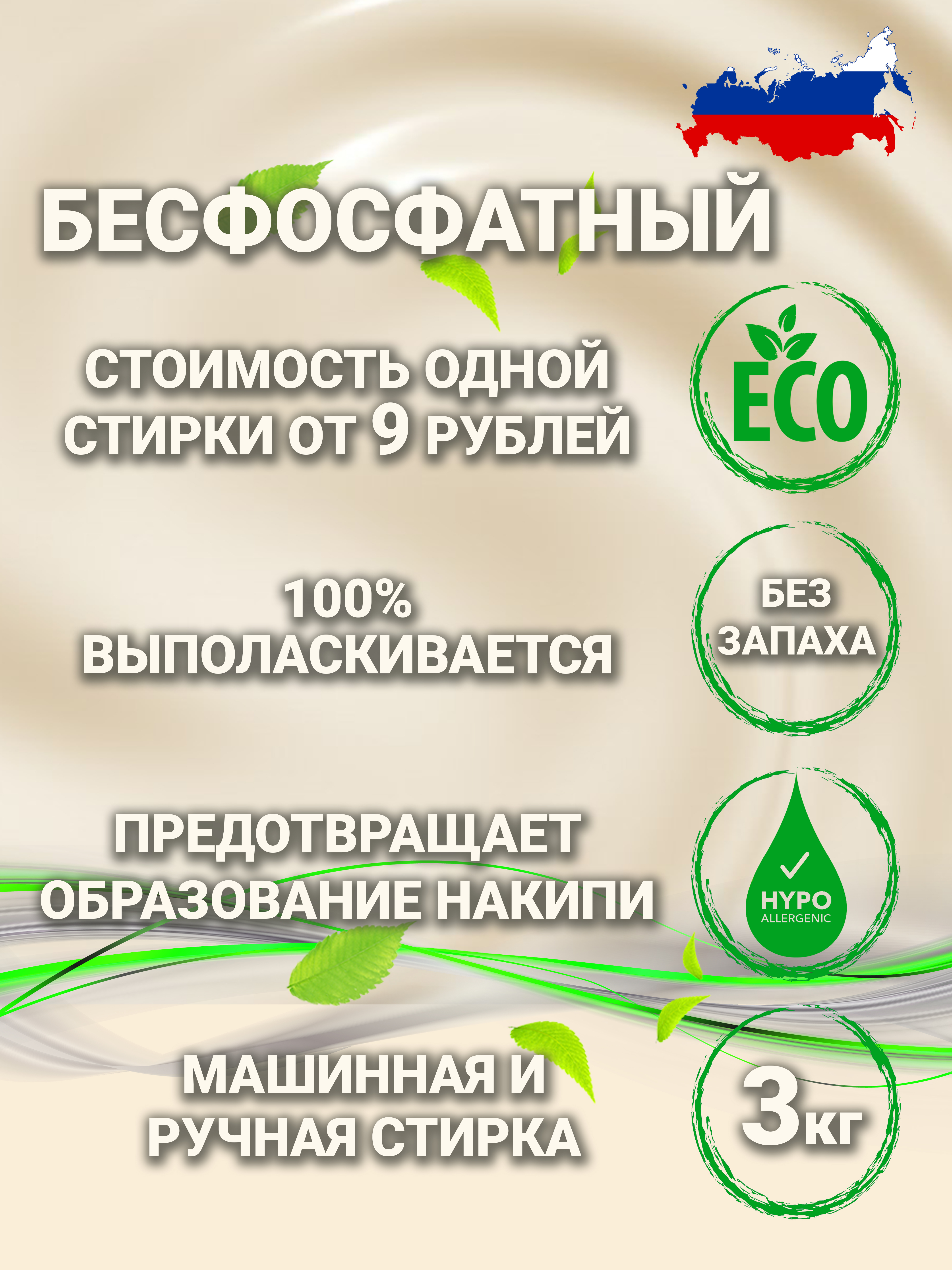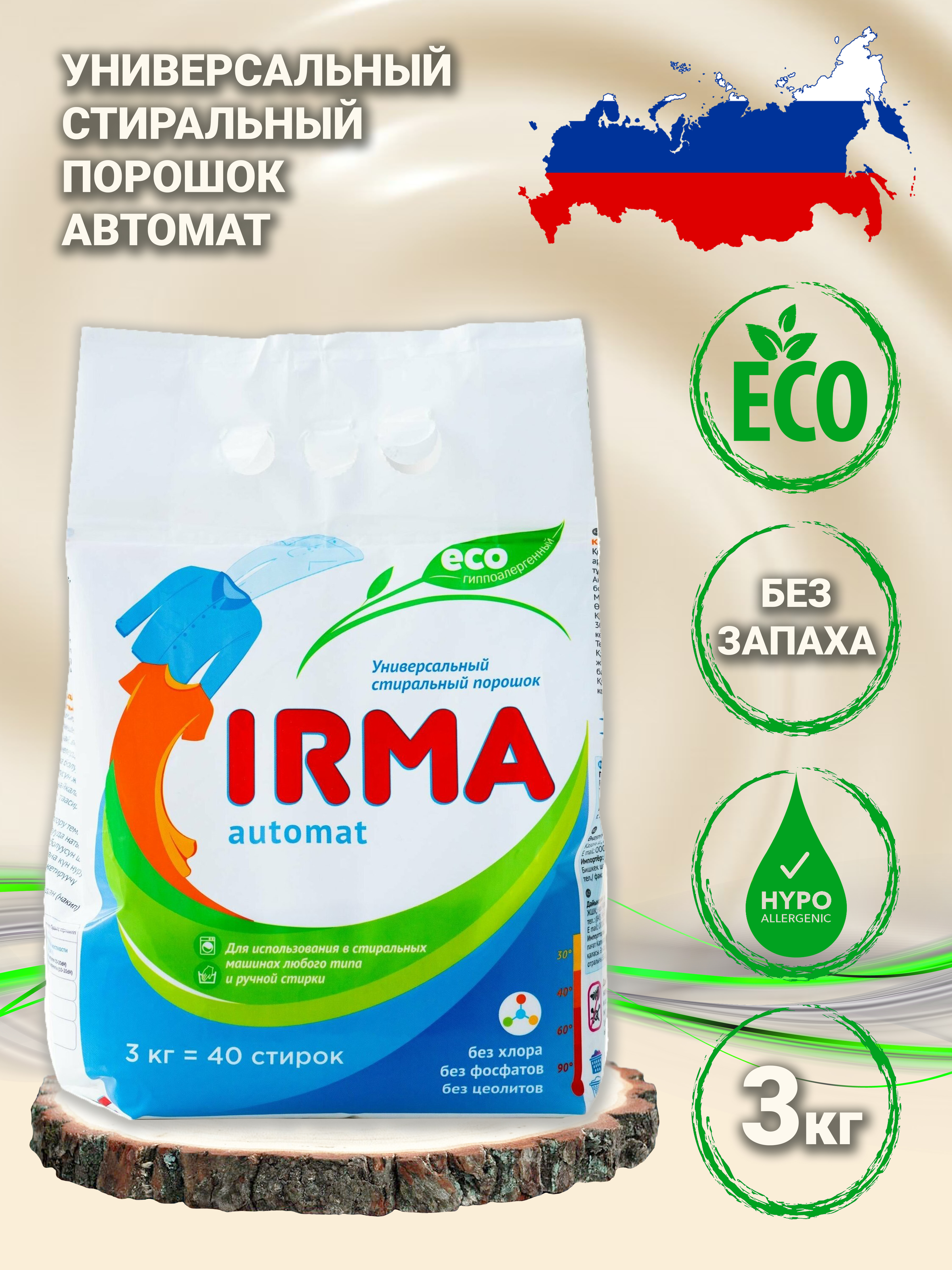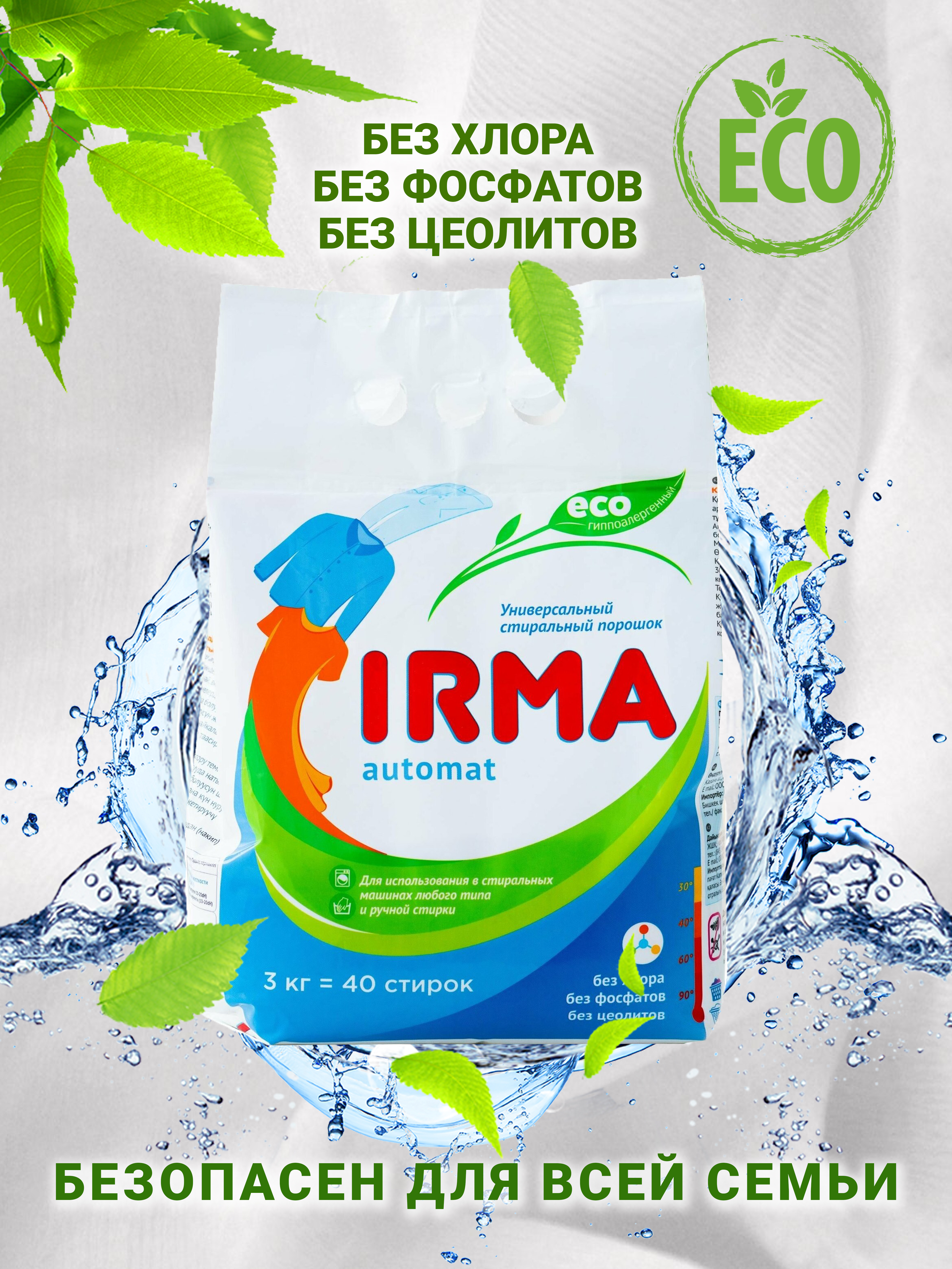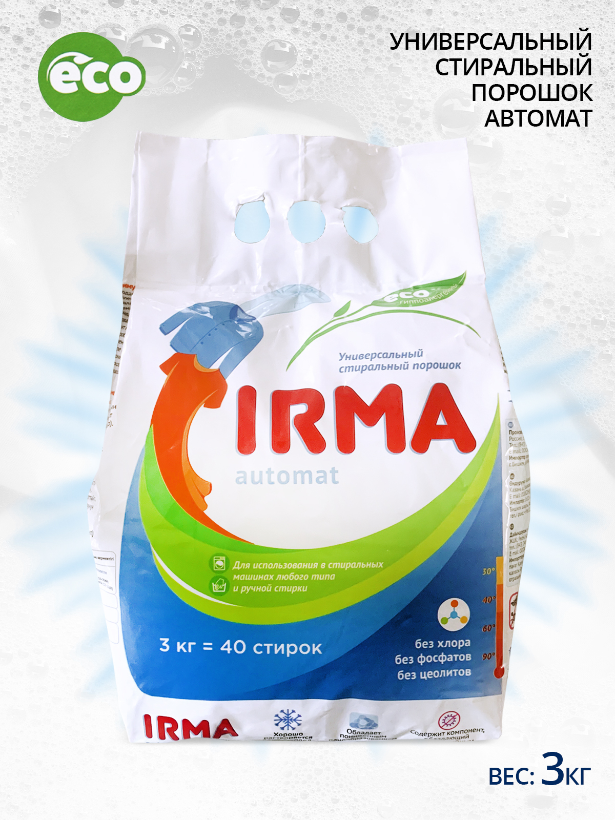 Универсальный стиральный БЕСФОСФАТНЫЙ порошок 3кг IRMA ИРМА для цветного и белого белья
