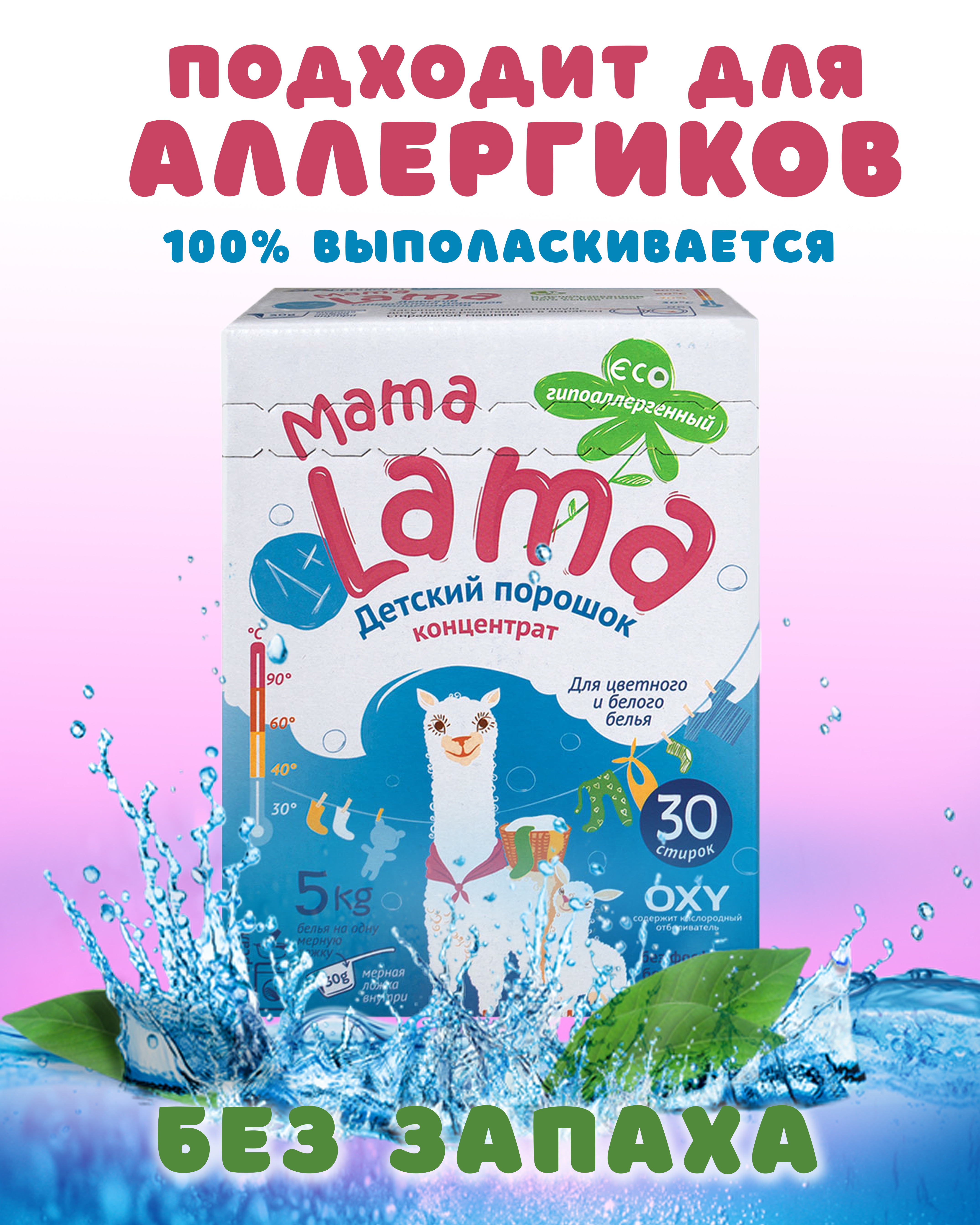 Универсальный БЕСФОСФАТНЫЙ детский стиральный порошок Mama Lama Мама Лама