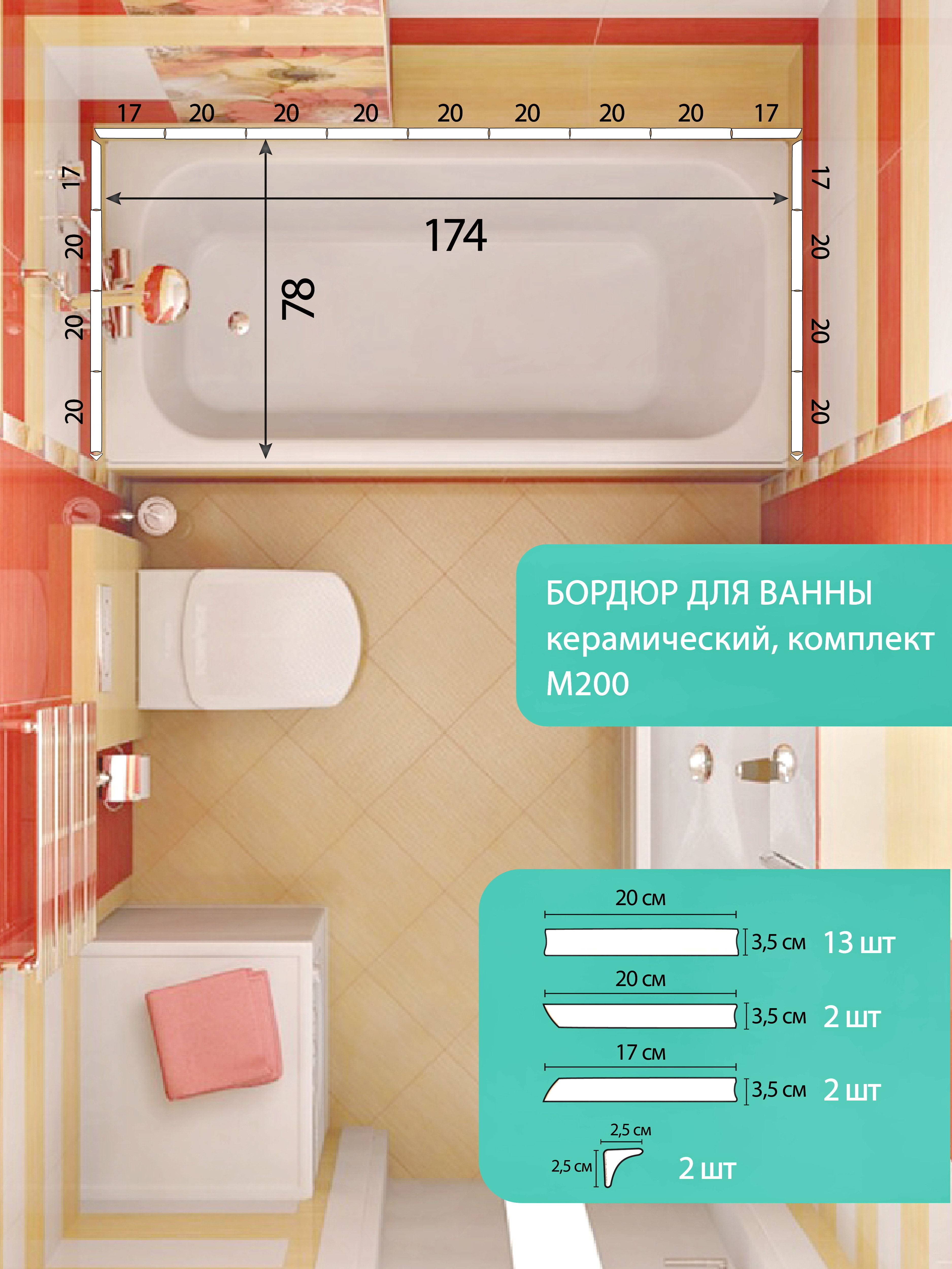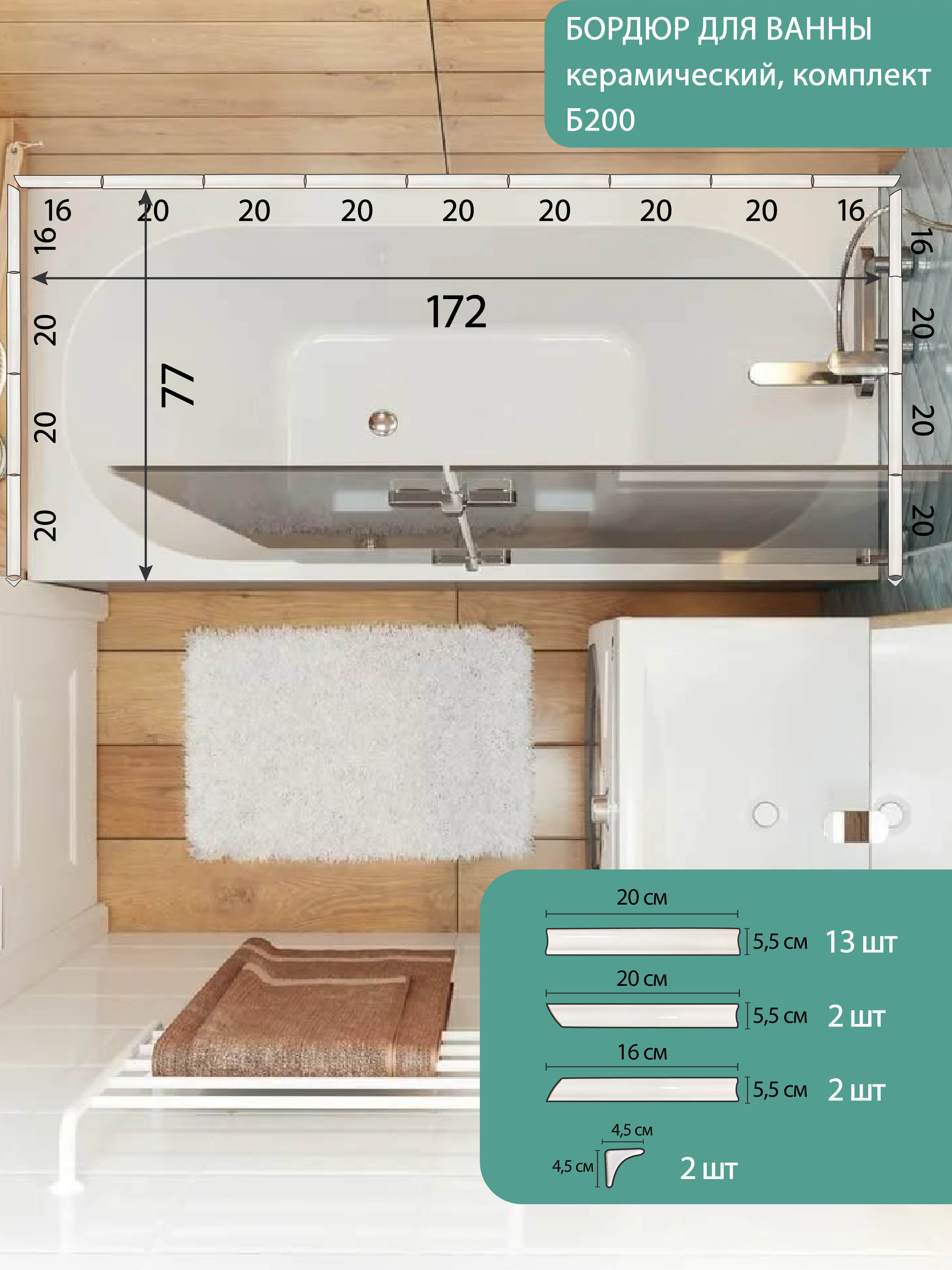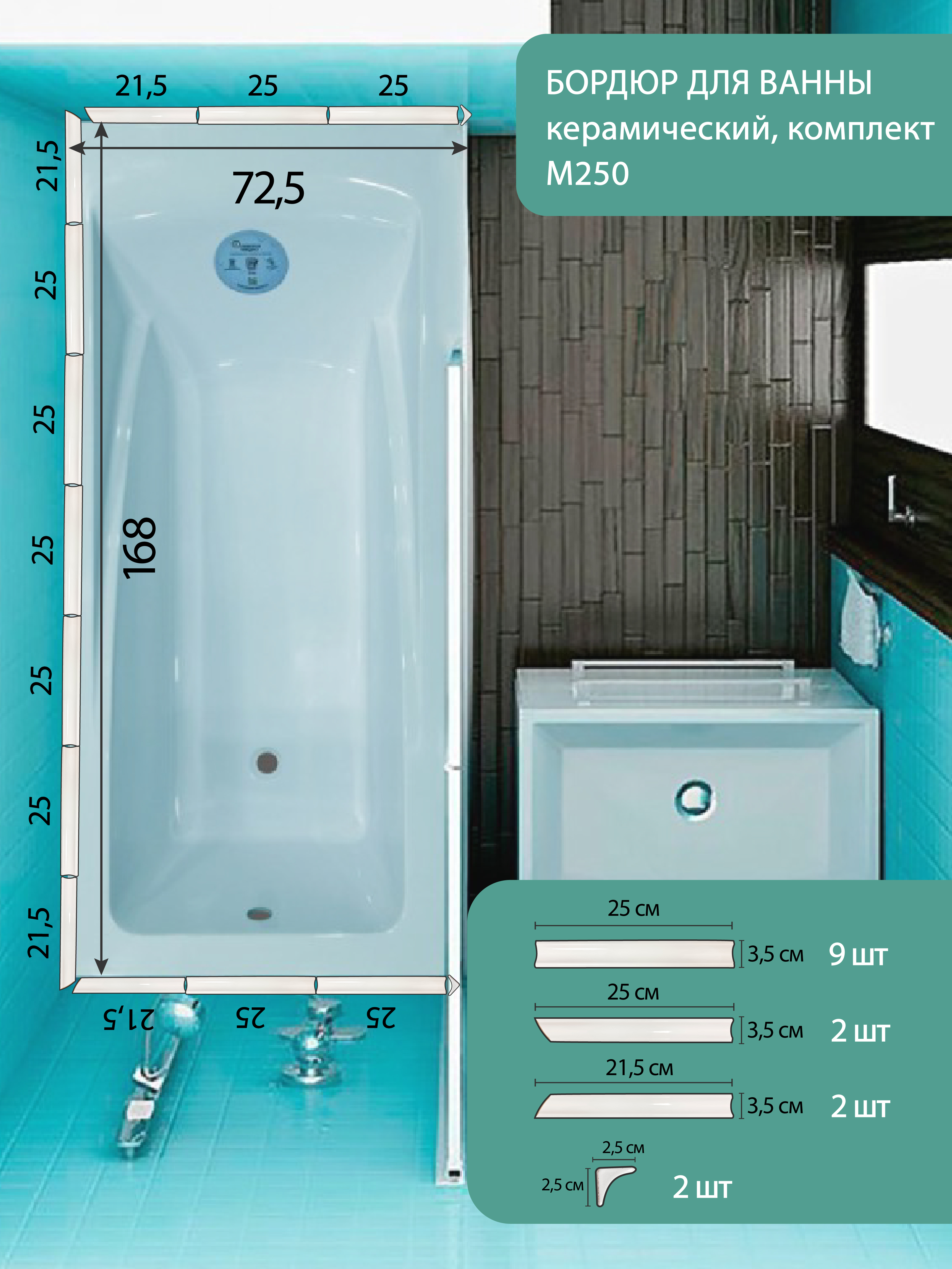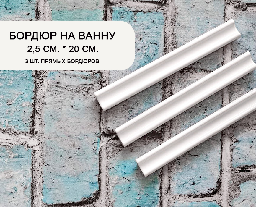 Бордюр для ванны / плинтус бордюр / плинтус на ванну, уголок на ванну 3шт. 2,5 см х 20 см.