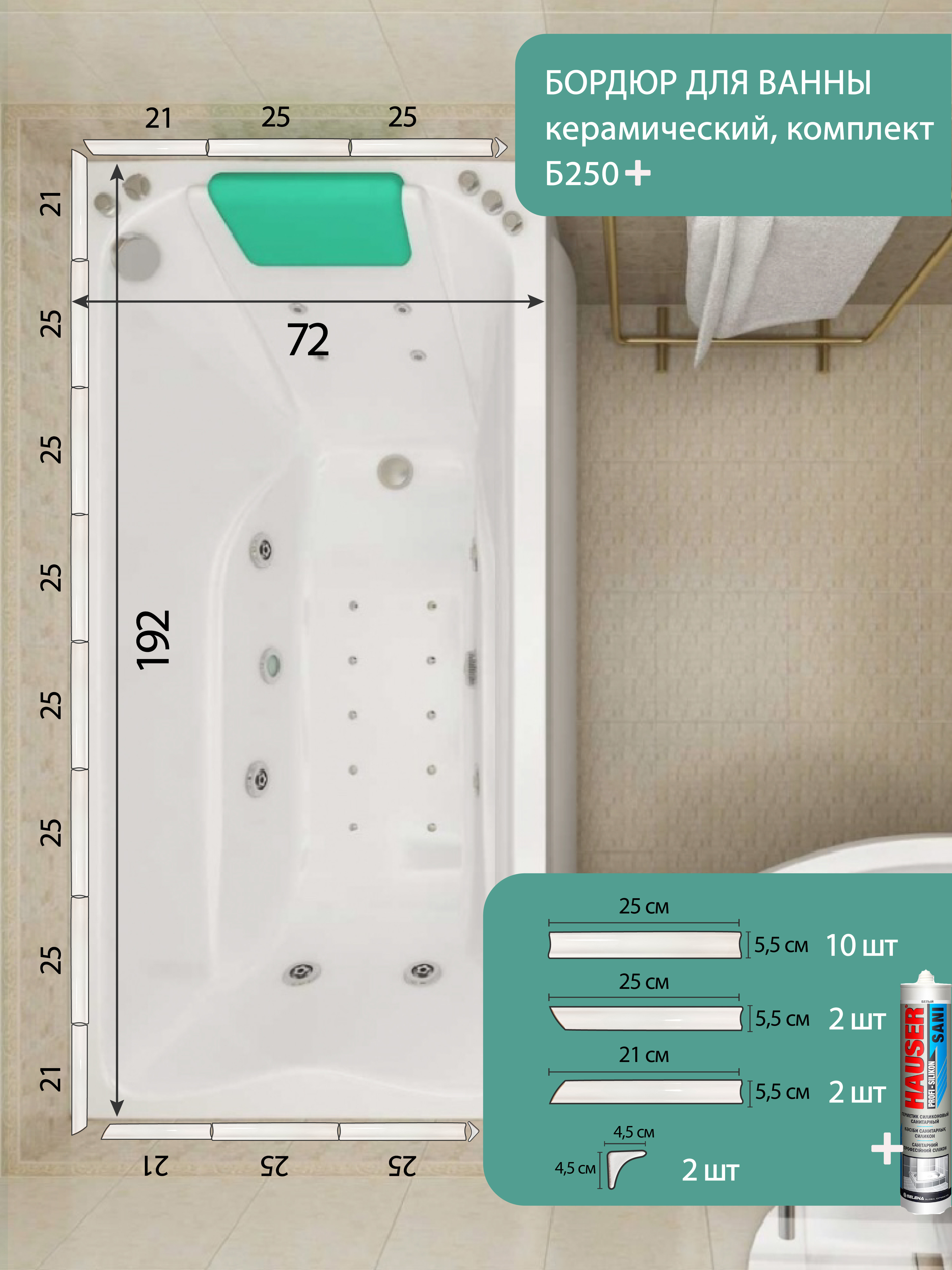 Бордюр для ванны / плинтус бордюр / плинтус на ванну, уголок на ванну 6шт. 2,5 см х 20 см.