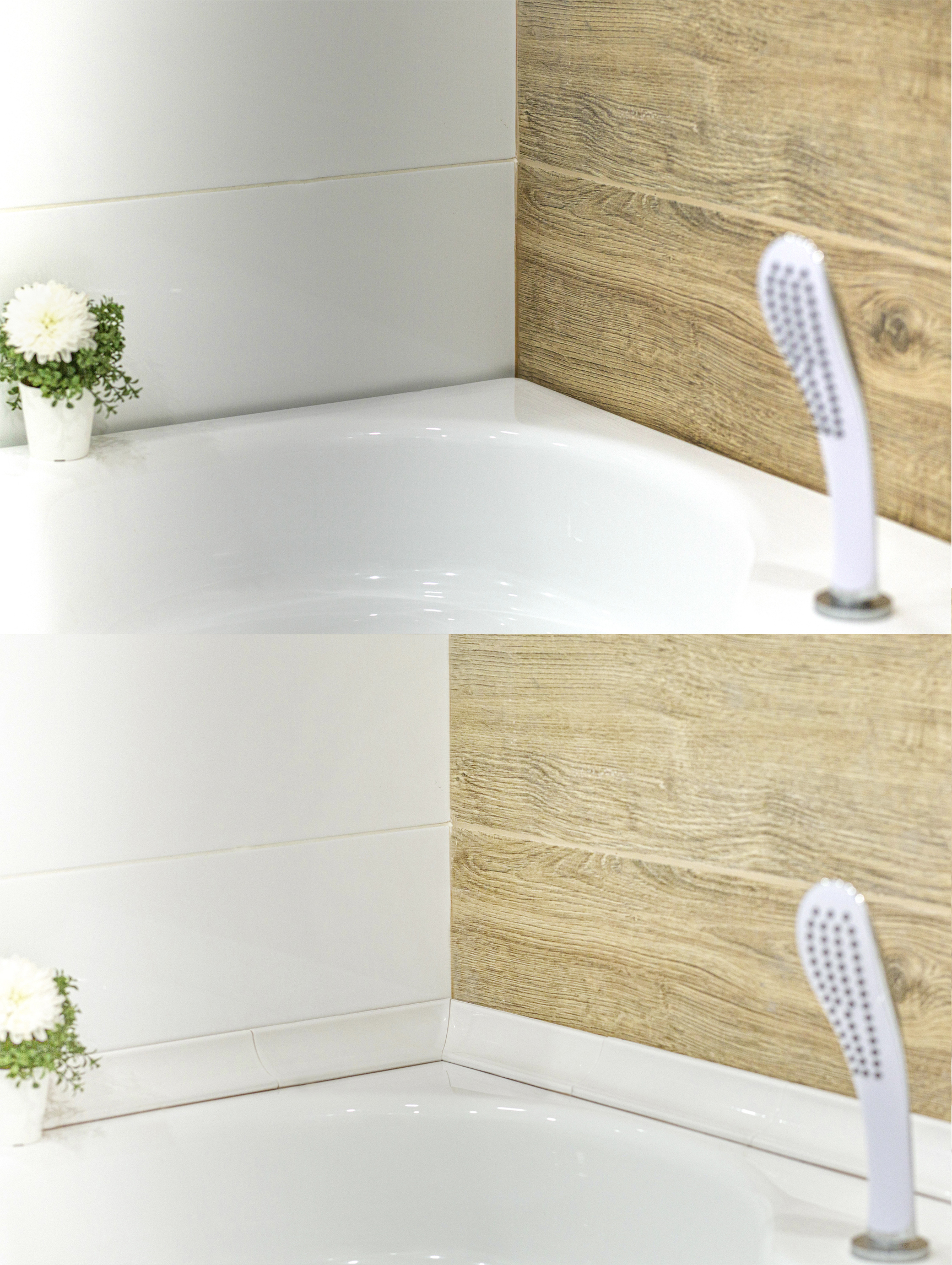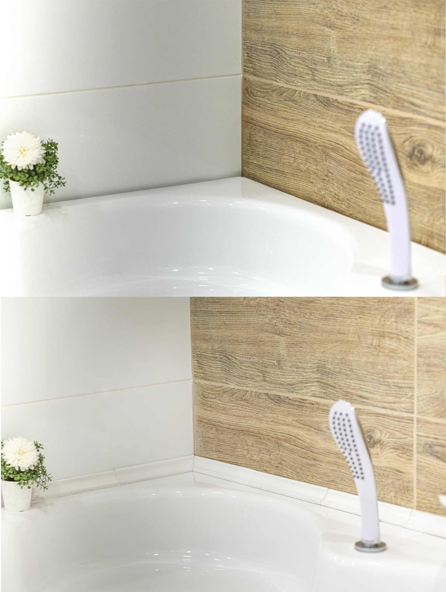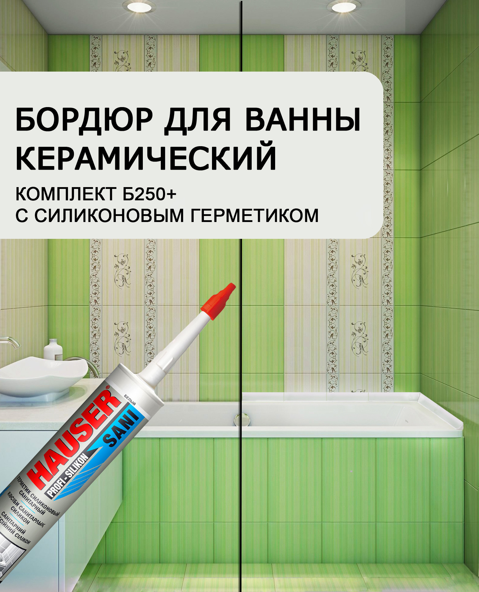 Бордюр для ванны с санитарным белым герметиком в комплекте, 250мм*35 мм, цвет белый
