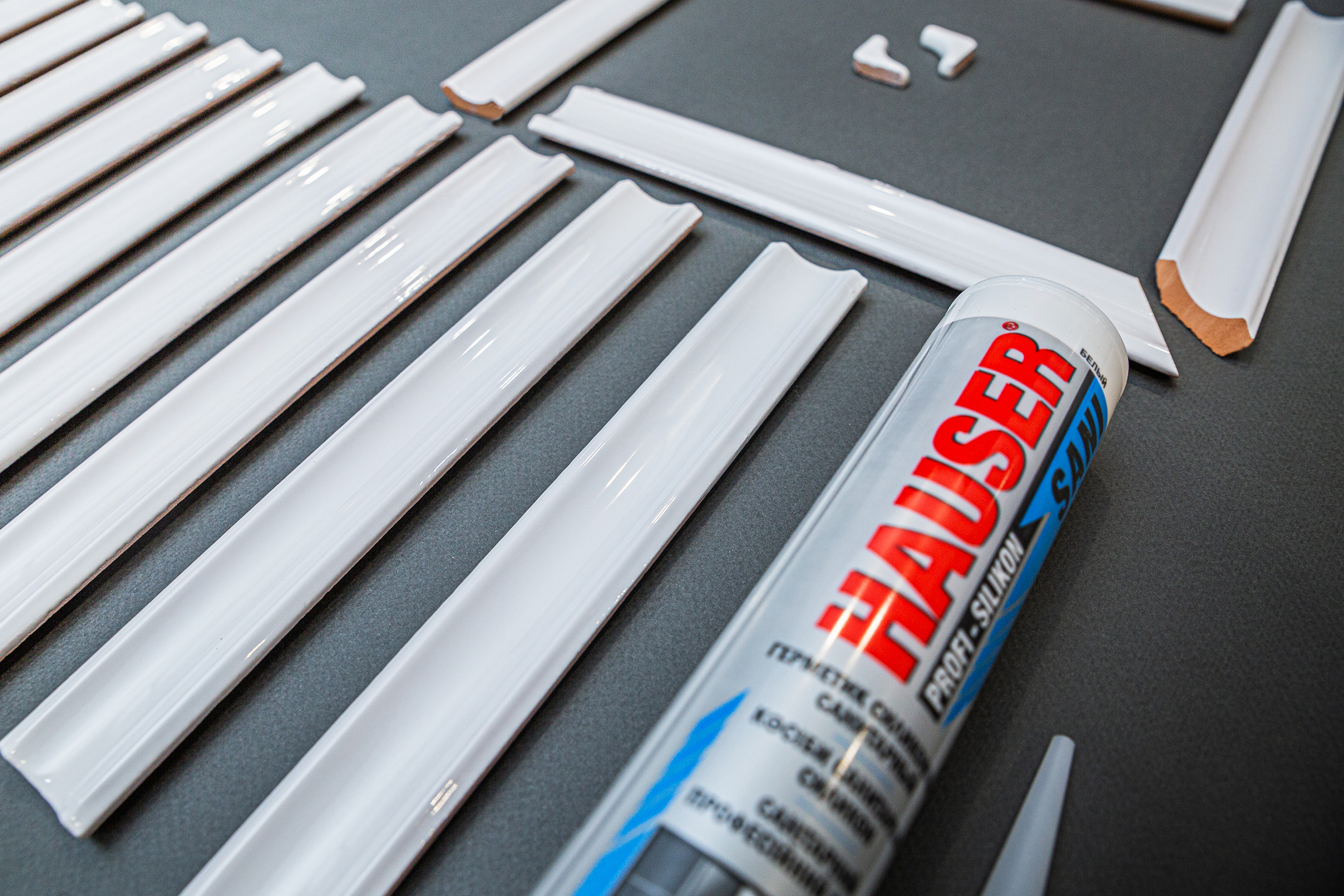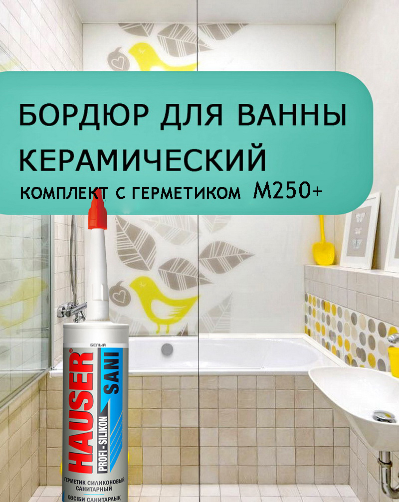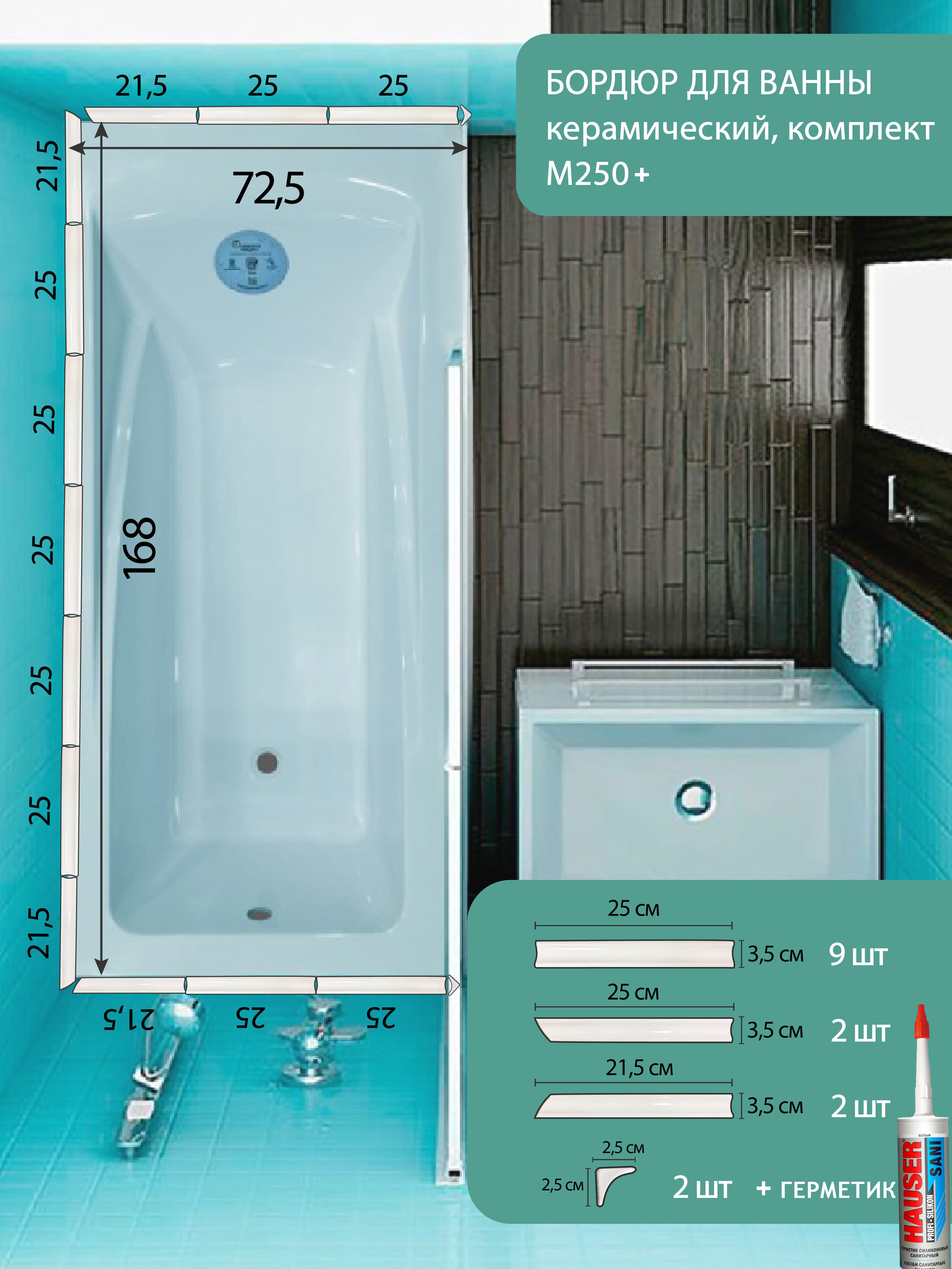 Бордюр для ванны с санитарным белым герметиком в комплекте, 250мм*35 мм, цвет белый