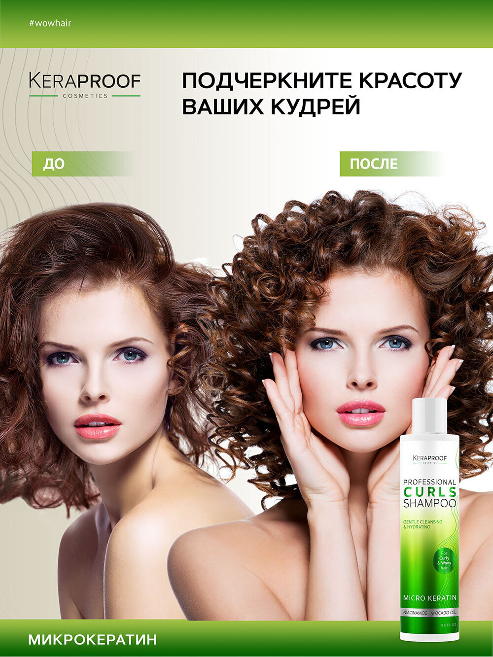 KERAPROOF Профессиональный шампунь для кудрявых и волнистых волос с Кератином и Авокадо, увлажняющий, 250 мл
