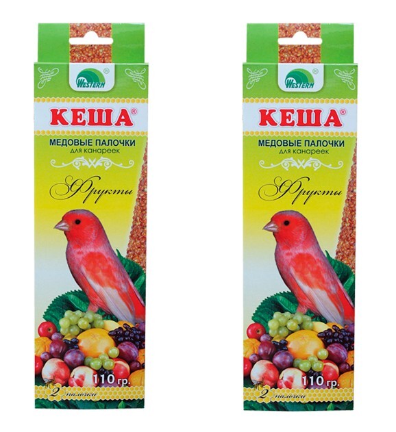Лакомство для птиц КЕША медовые палочки для канареек, фрукты, 110 г x 2
