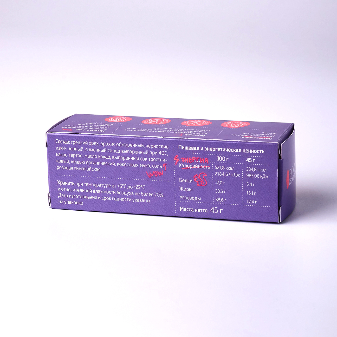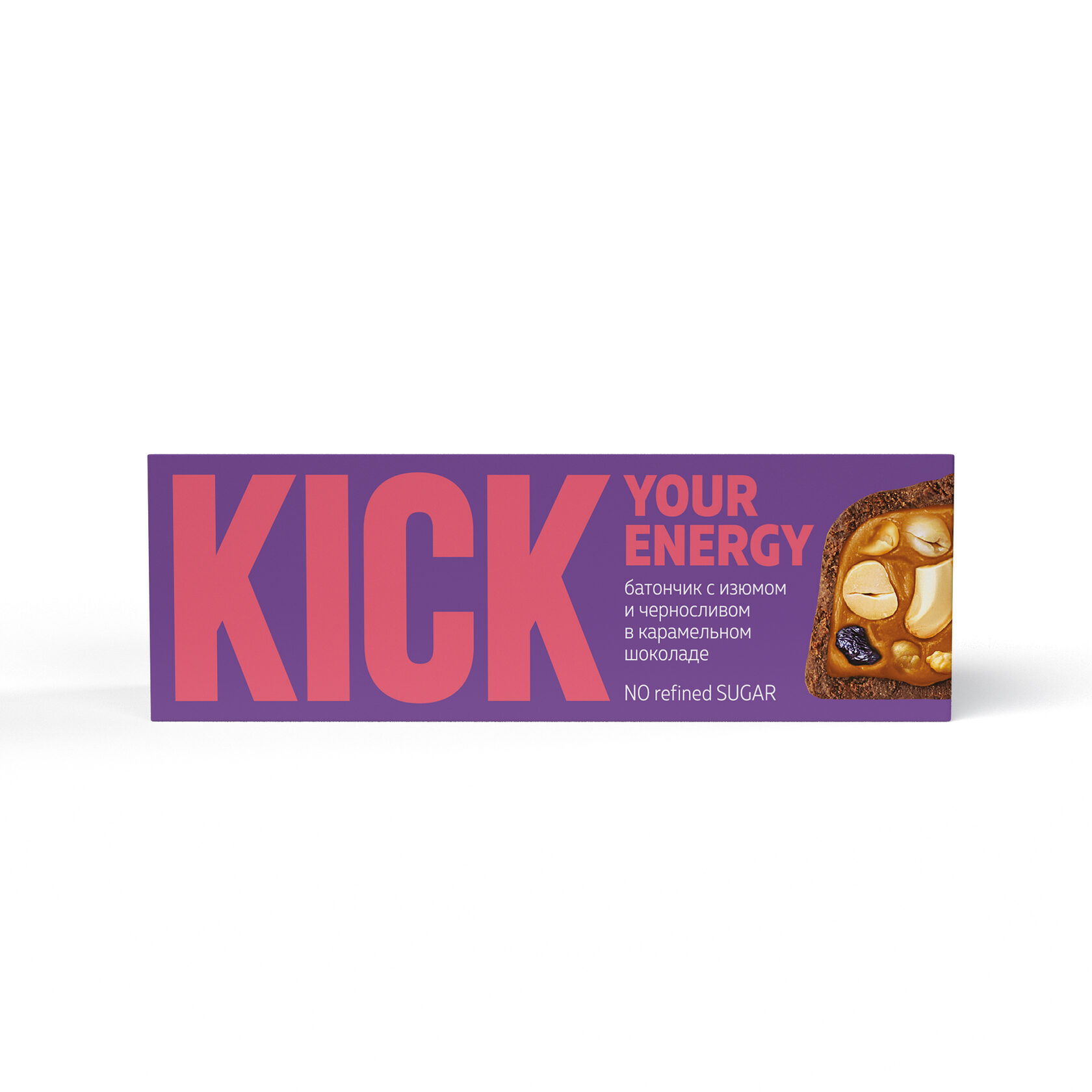 Батончик "KICK" с изюмом и черносливом в карамельном шоколаде 45г, 1 шт