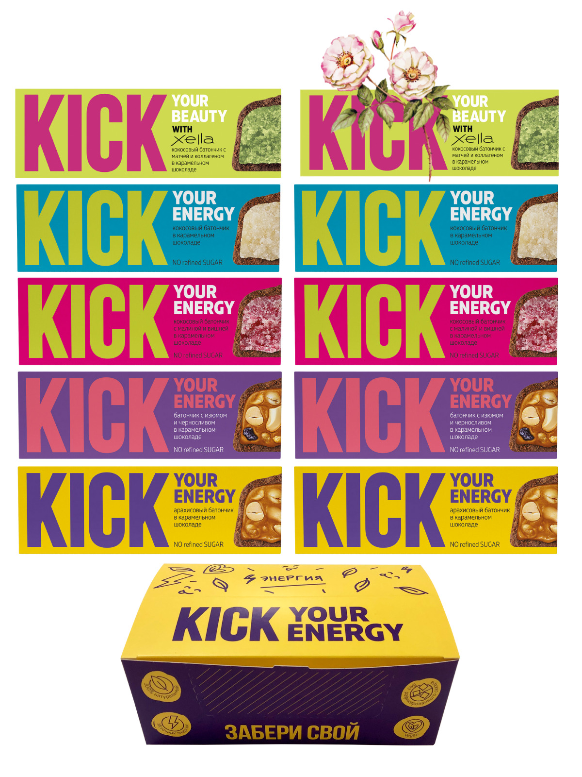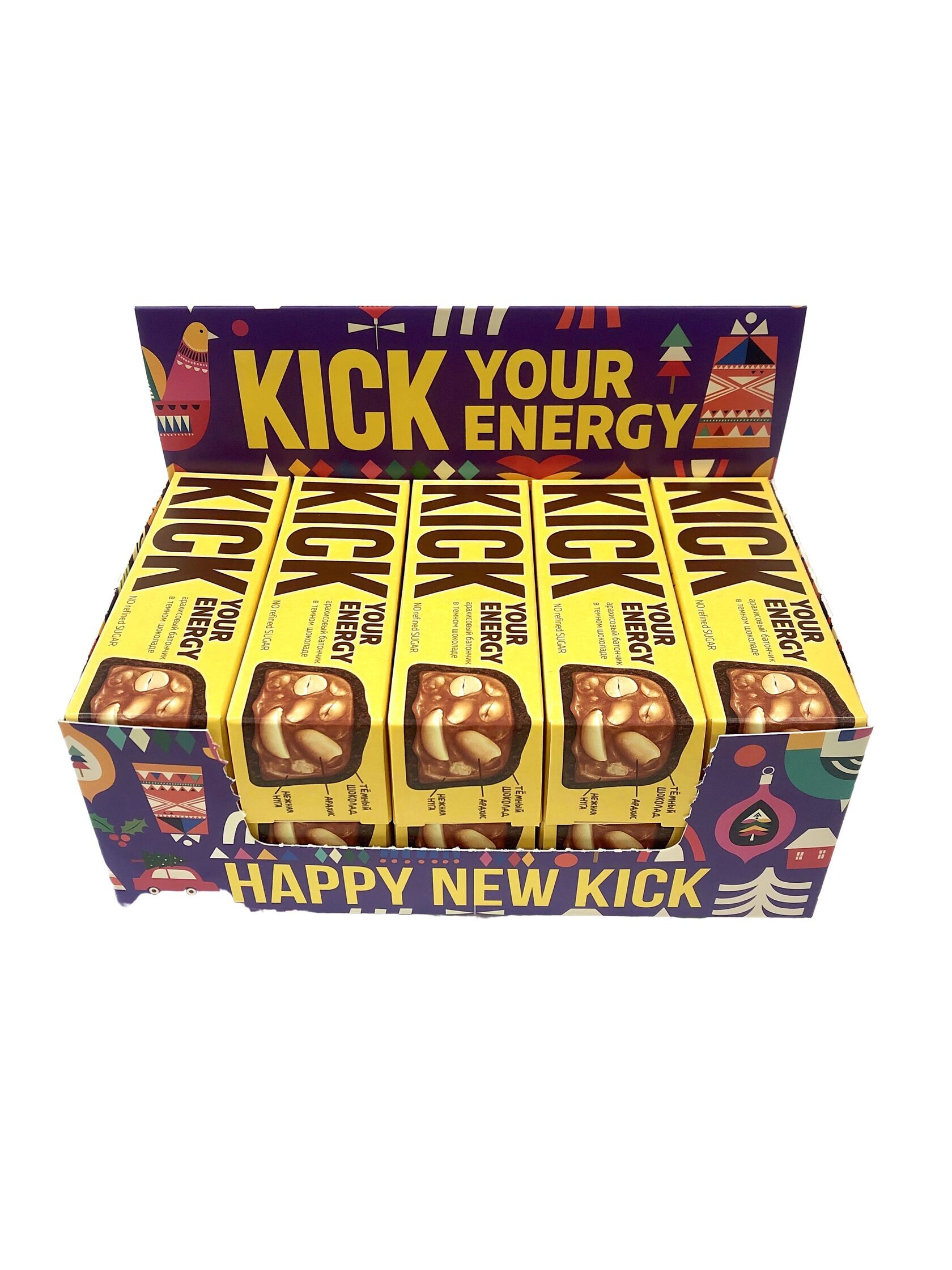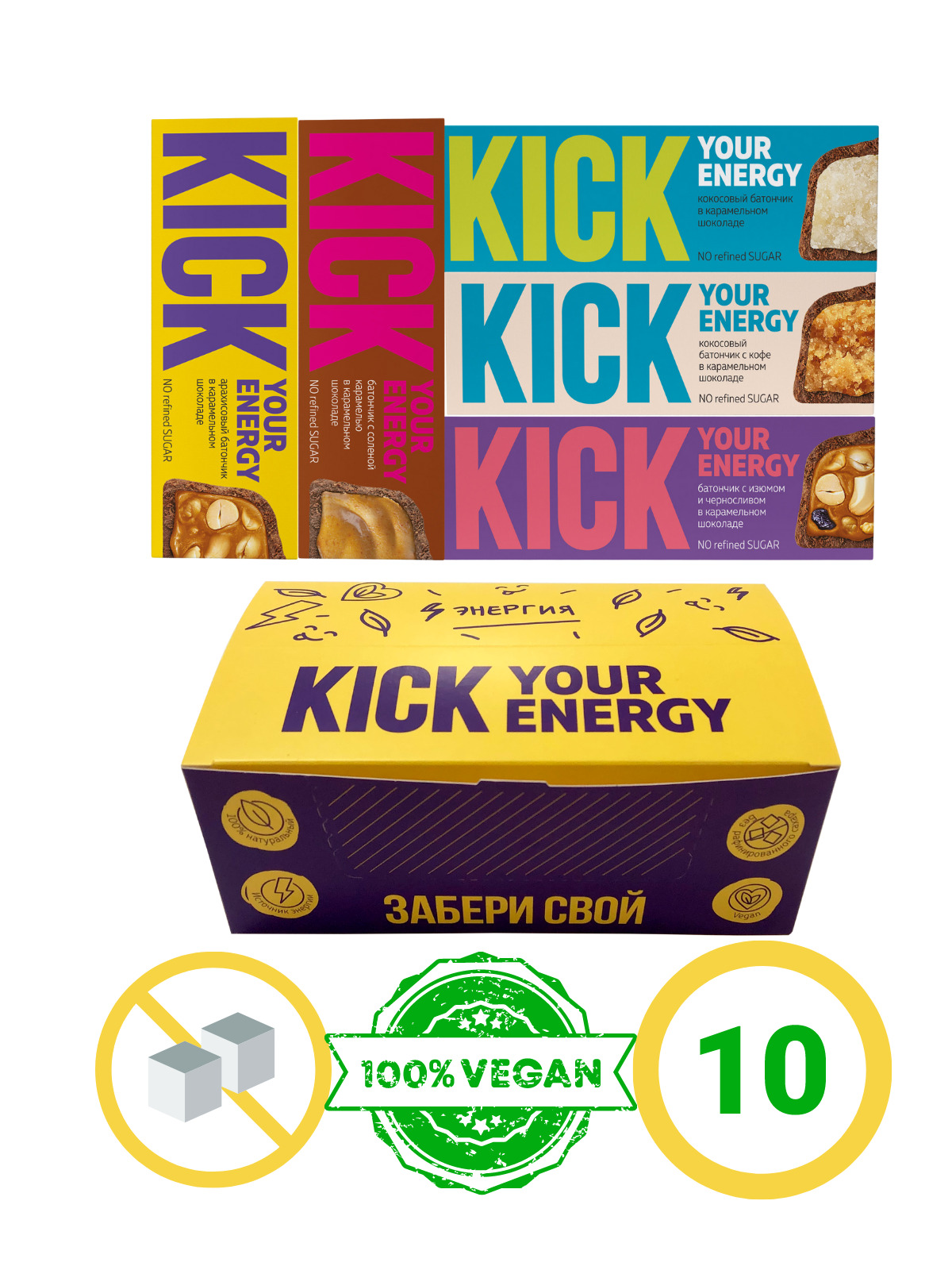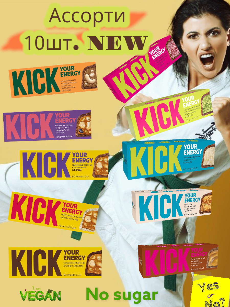 Батончики без сахара KICK YOUR ENERGY, ассорти2, 10шт. по 45г.