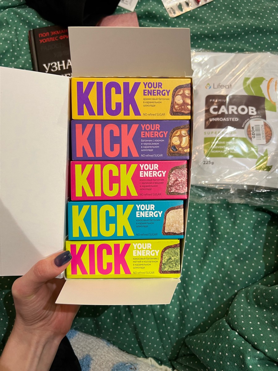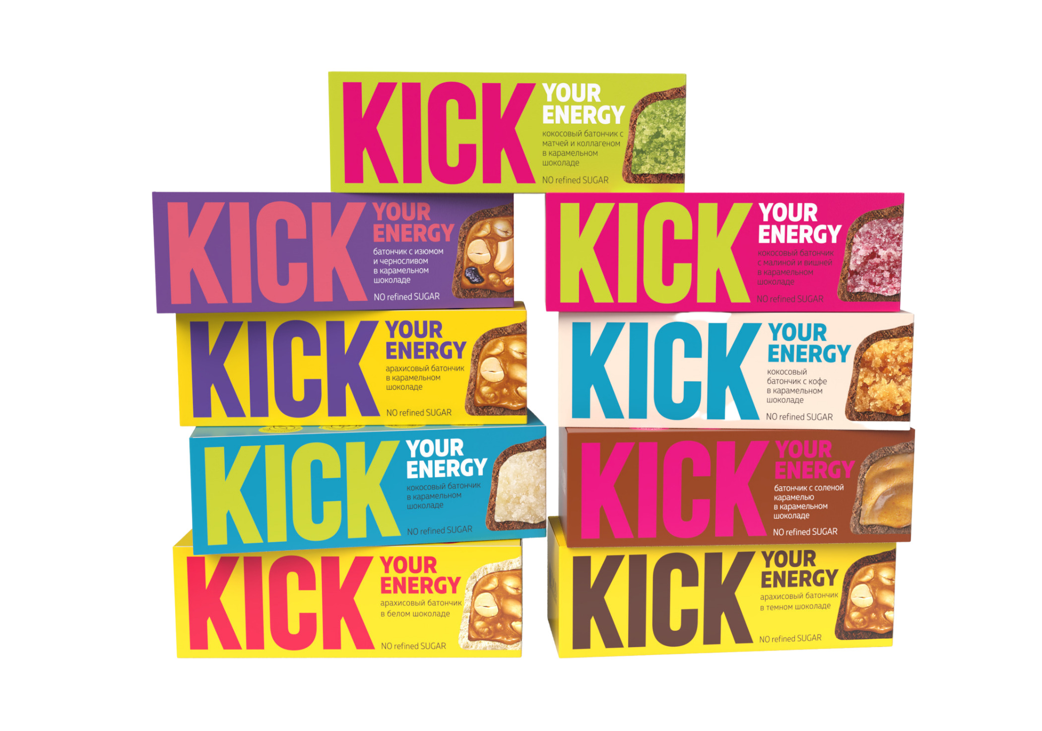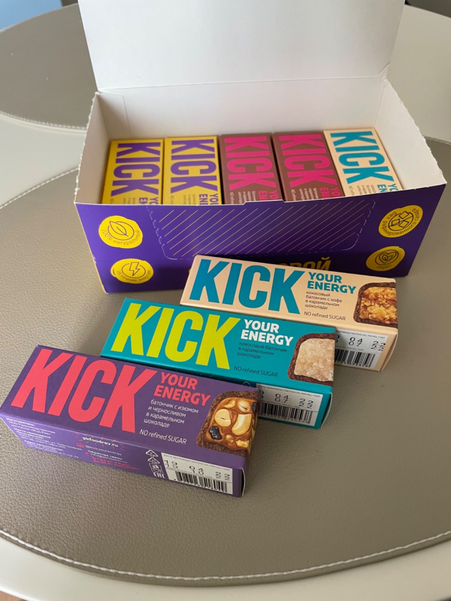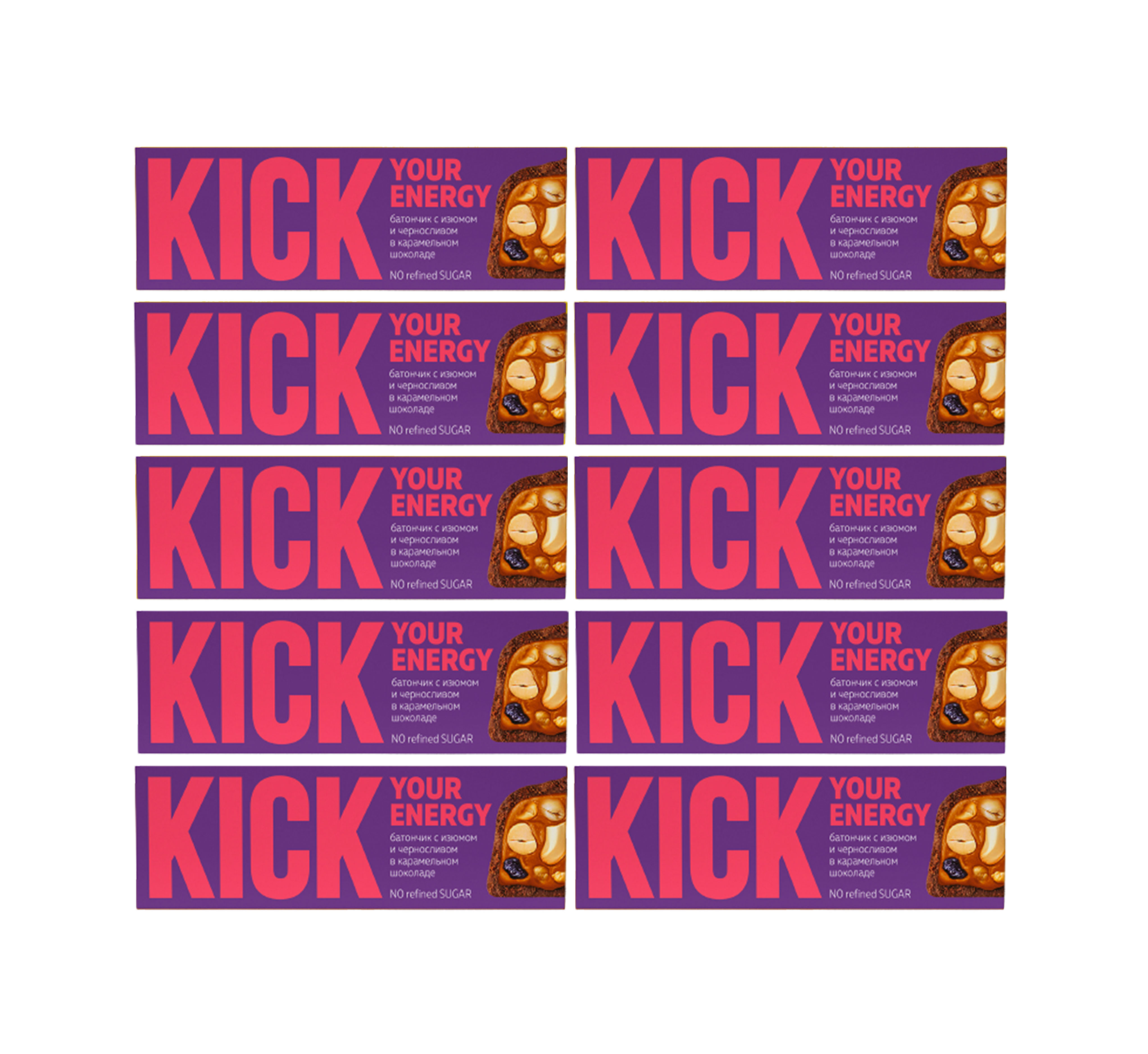 Батончики без сахара KICK YOUR ENERGY, ассорти2, 10шт. по 45г.
