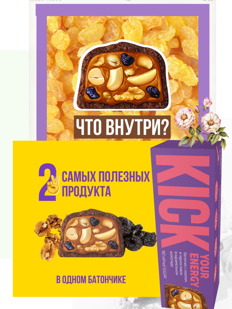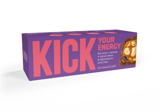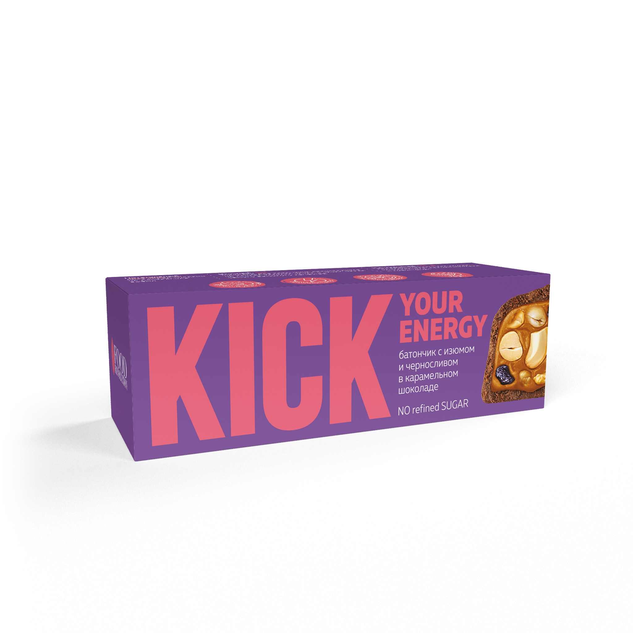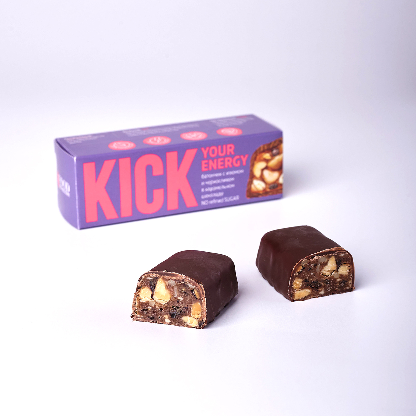 KICK / Батончик с изюмом и черносливом в карамельном шоколаде. / Упаковка 10 штук.