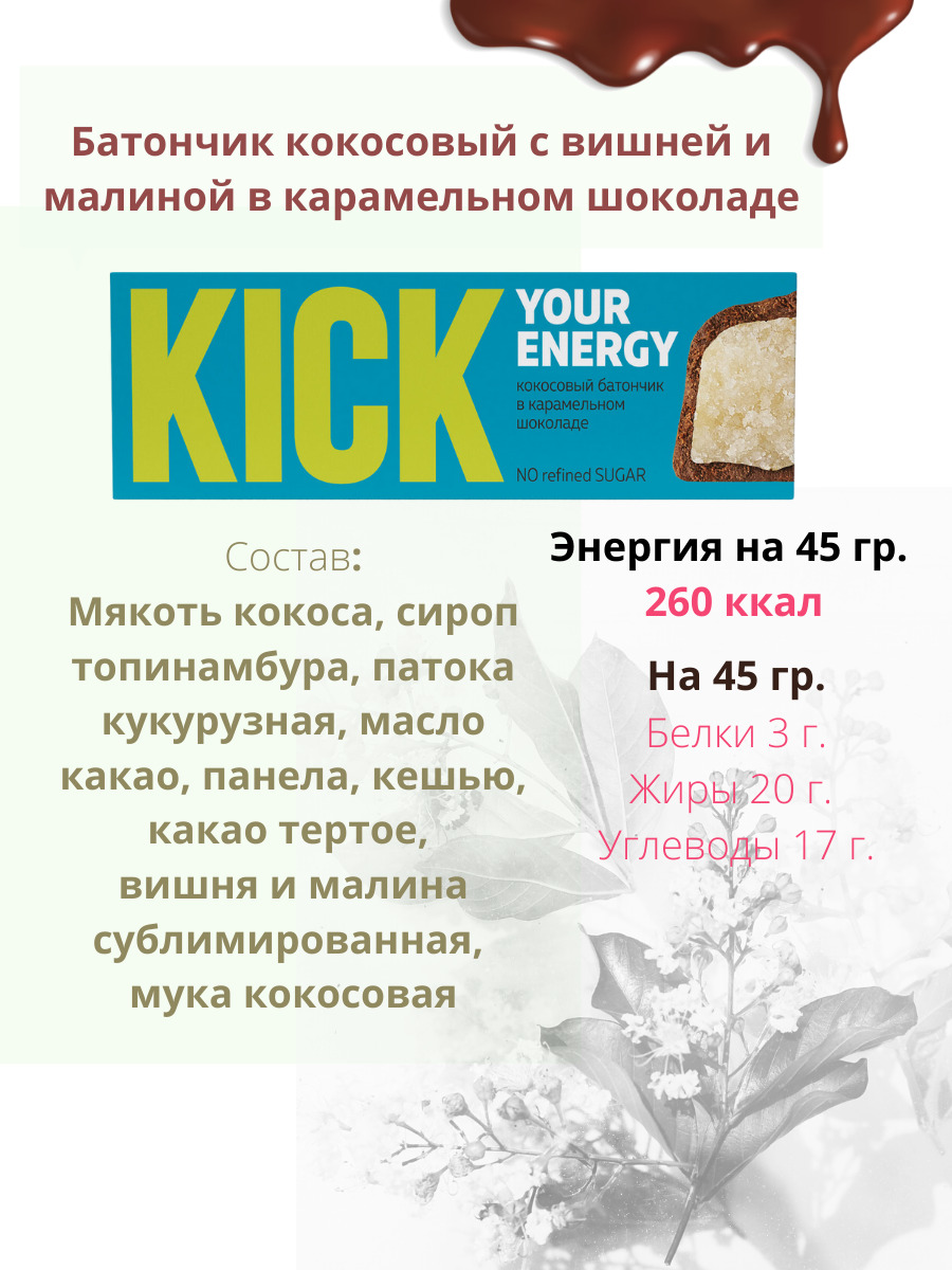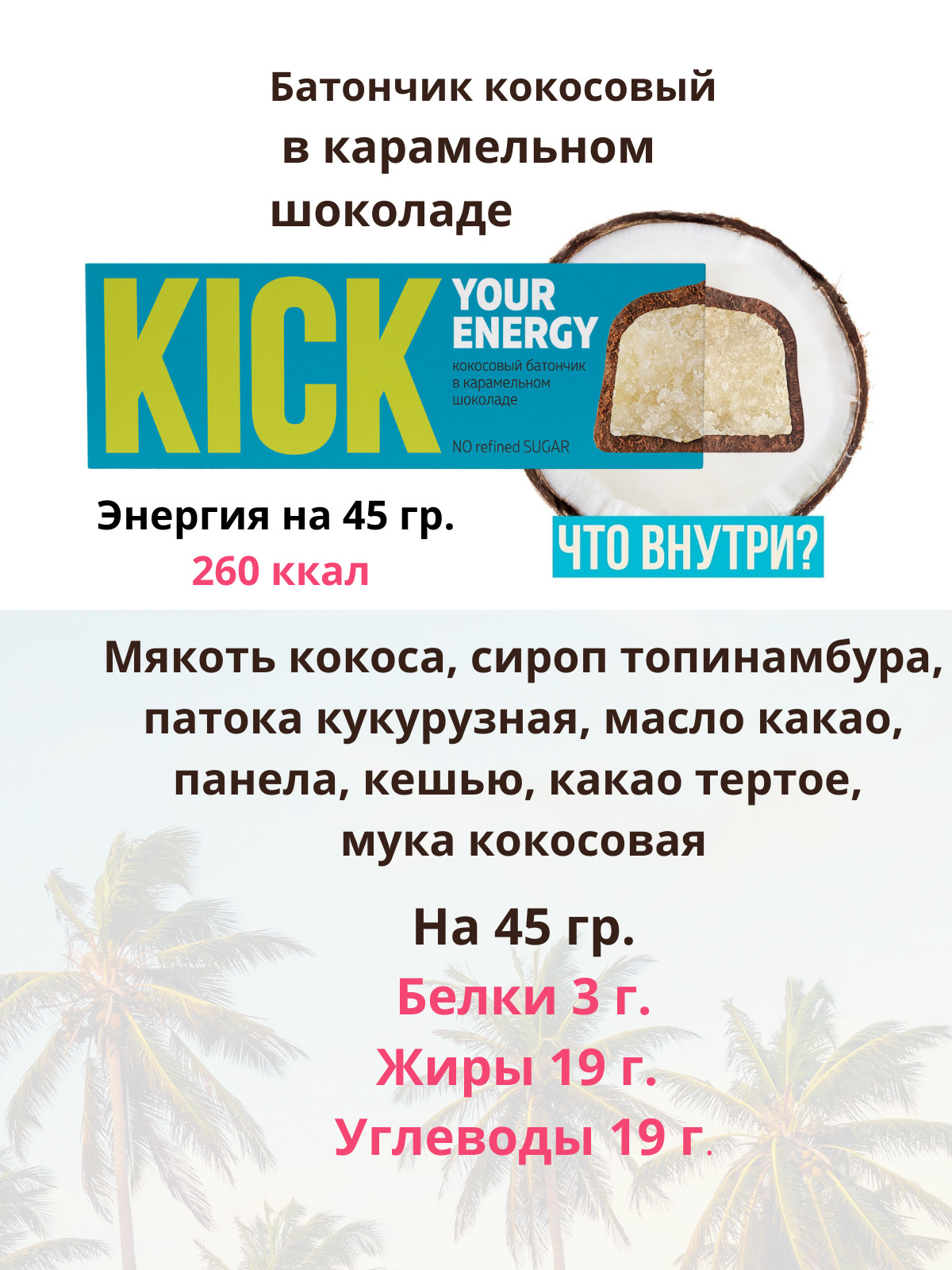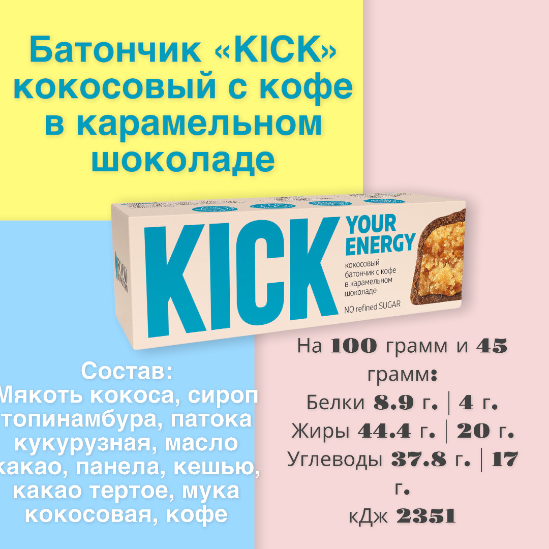 Батончик KICK кокосовый c кофе в карамельном шоколаде 10 шт