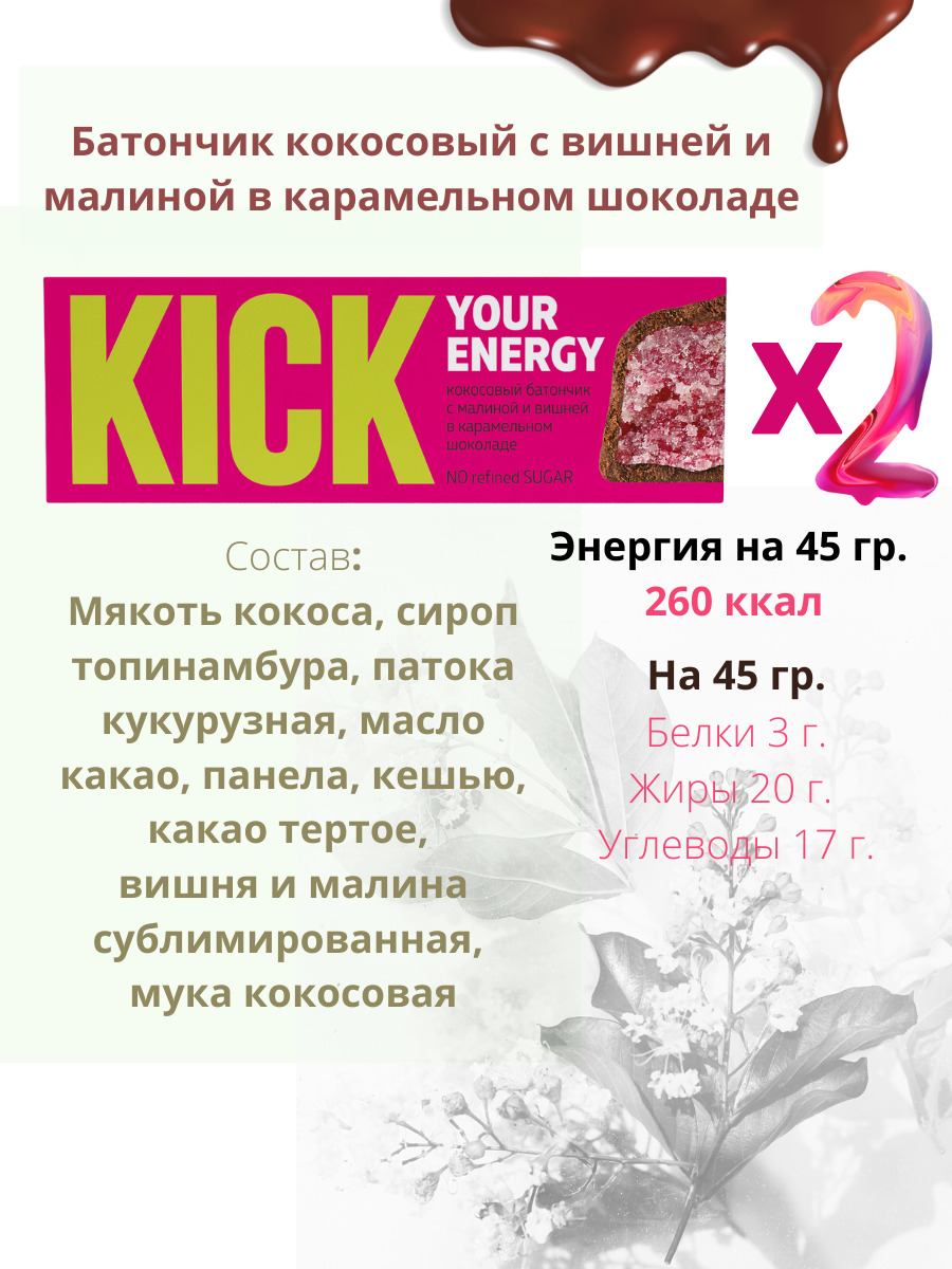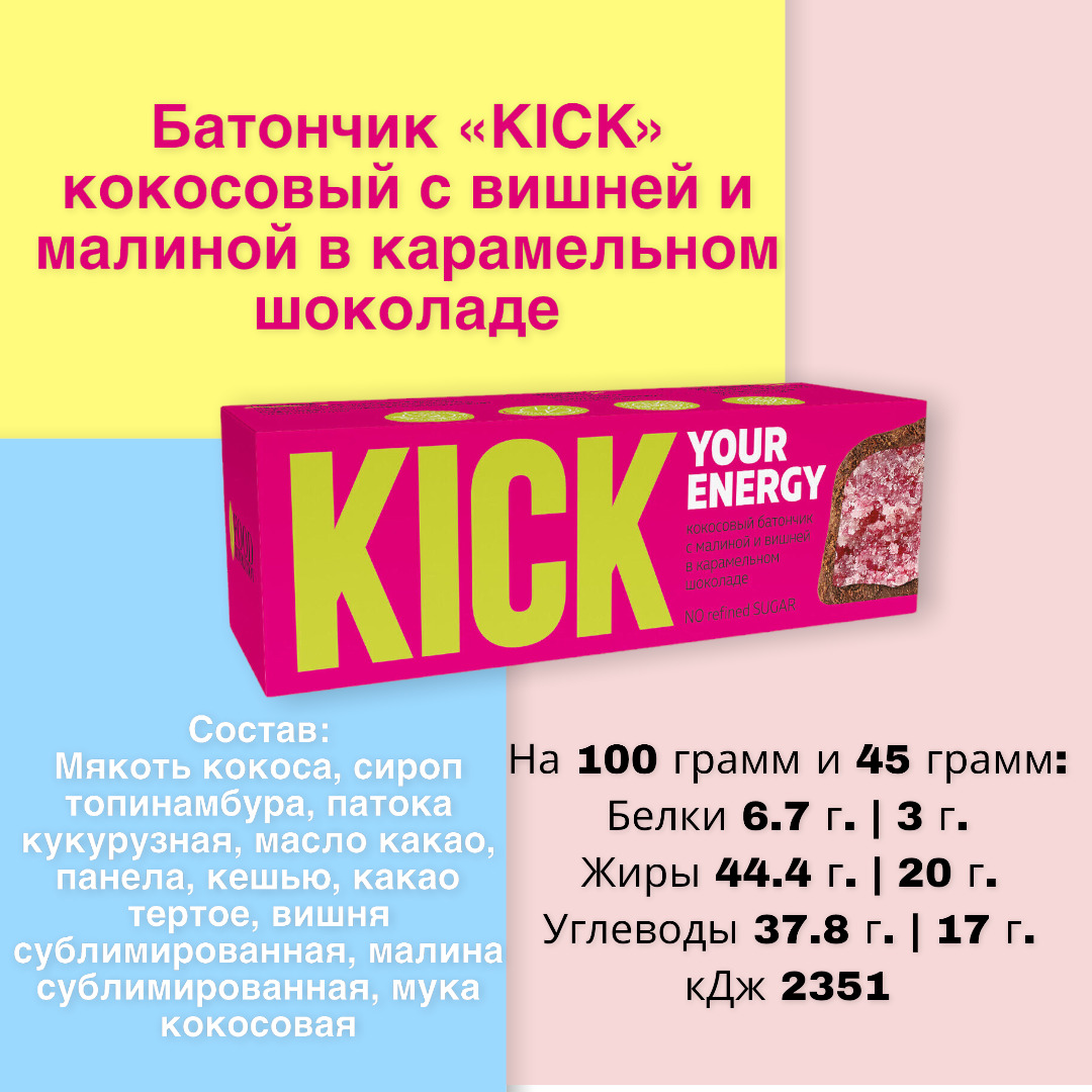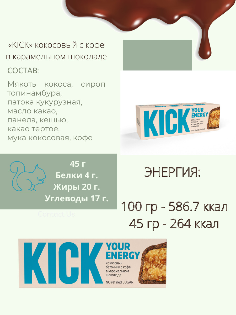 Батончик KICK кокосовый c кофе в карамельном шоколаде 10 шт