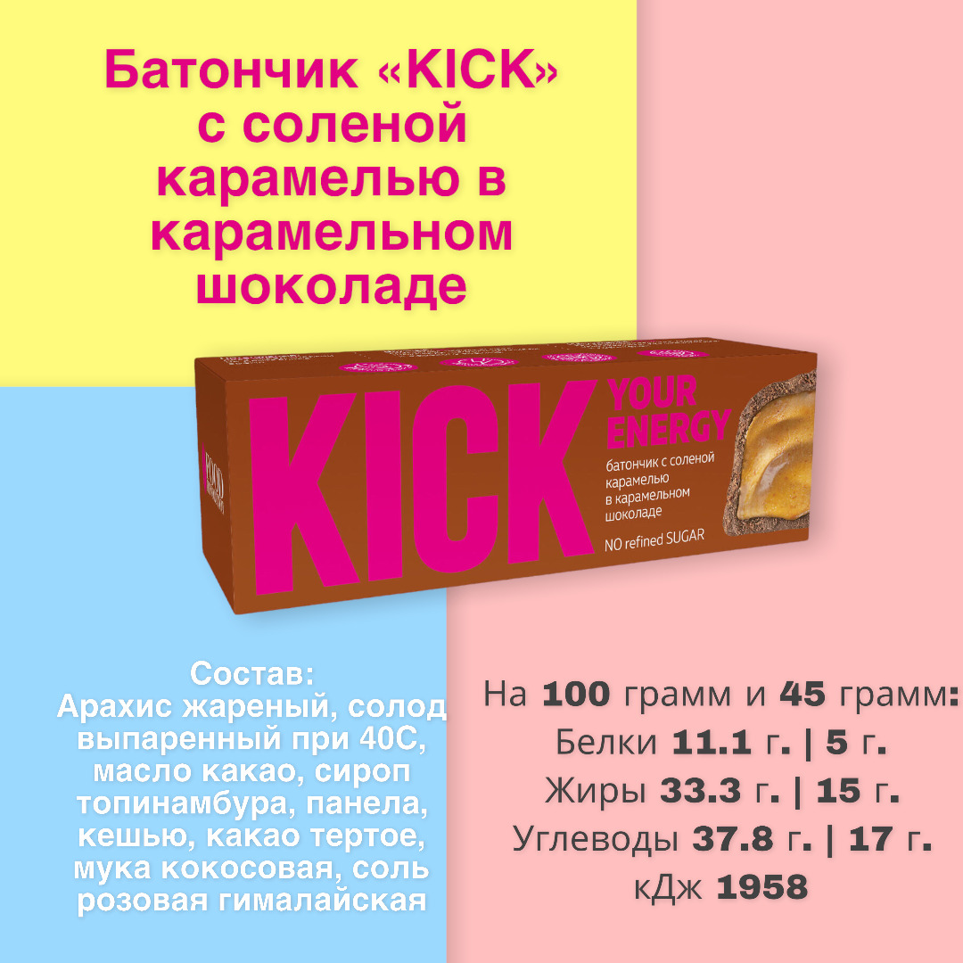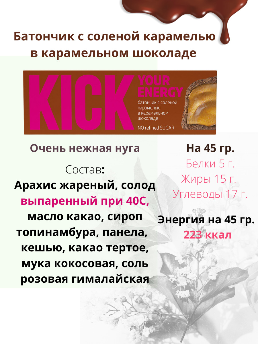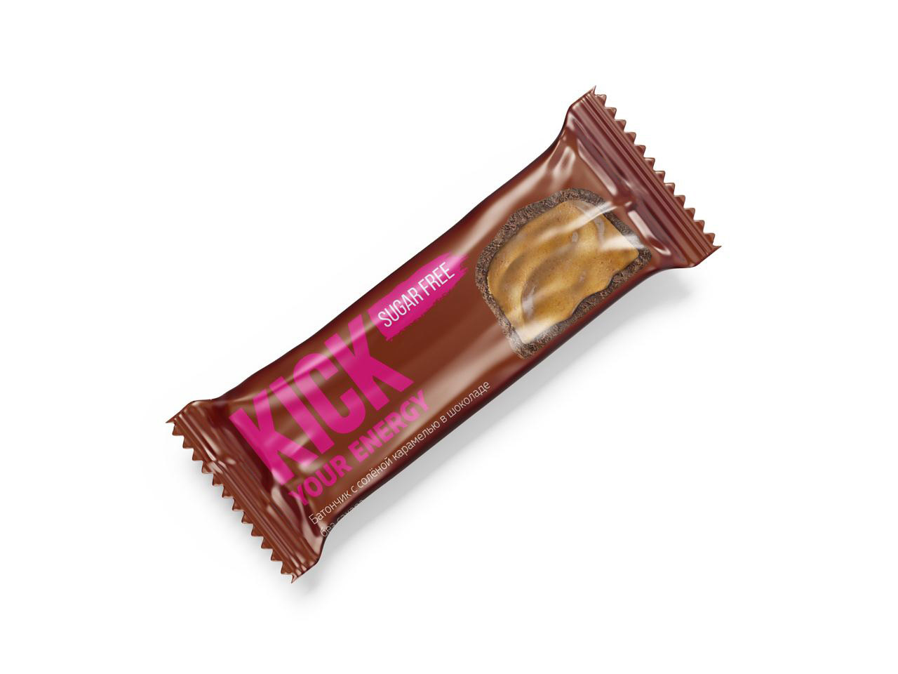 KICK / Батончик с соленой карамелью в карамельном шоколаде. / Упаковка 10 штук.