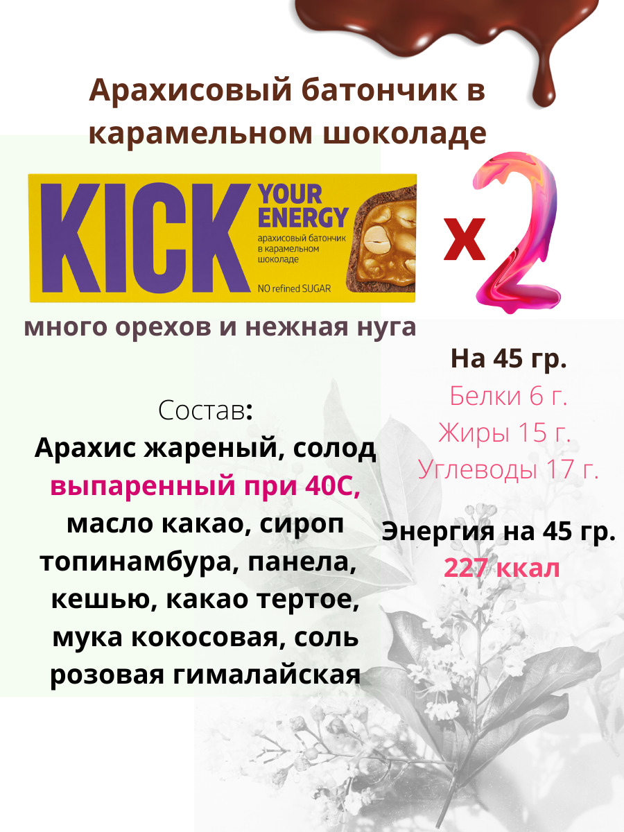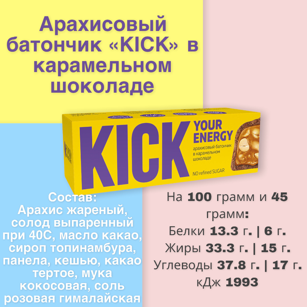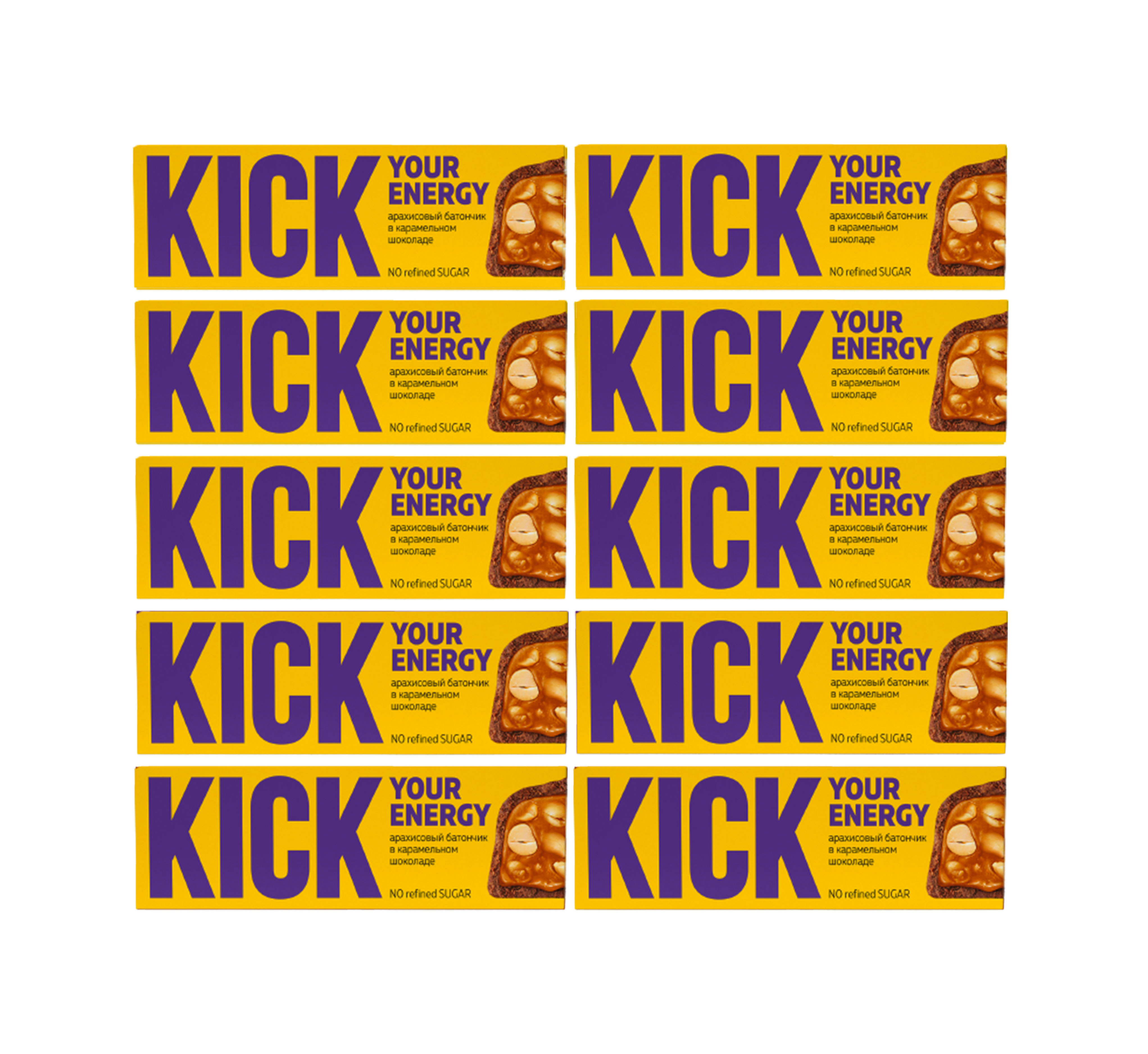 KICK / Арахисовый батончик в карамельном шоколаде. / Упаковка 10 штук.