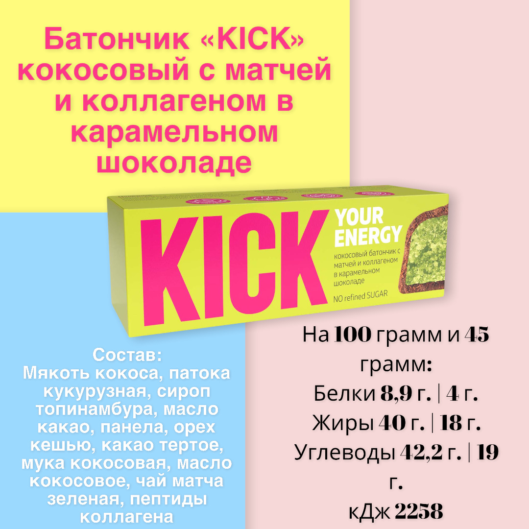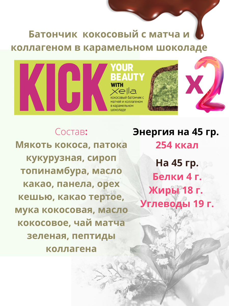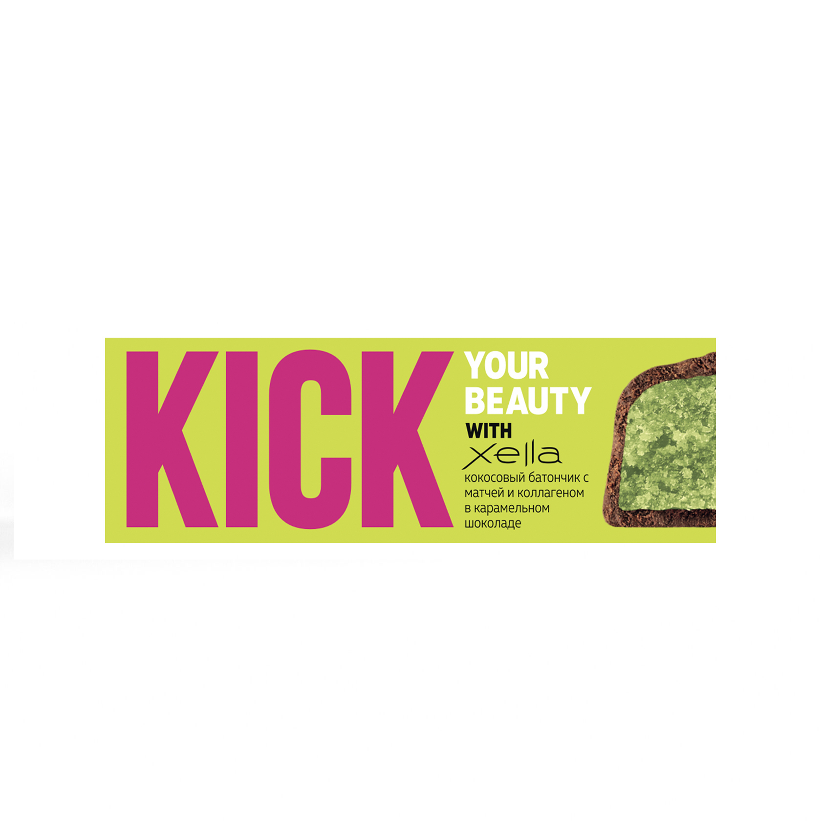 Батончик KICK x Xella кокосовый с матчей и коллагеном в карамельном шоколаде