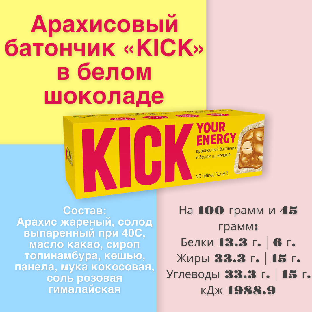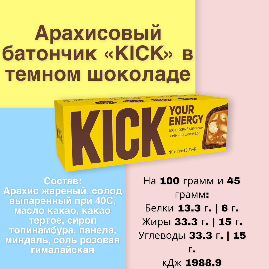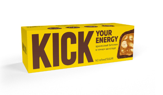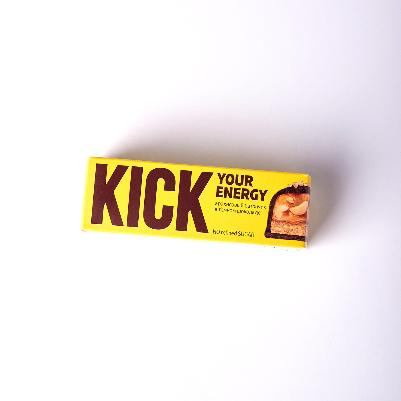 Батончик "KICK" арахисовый в темном шоколаде 45г, 1 шт
