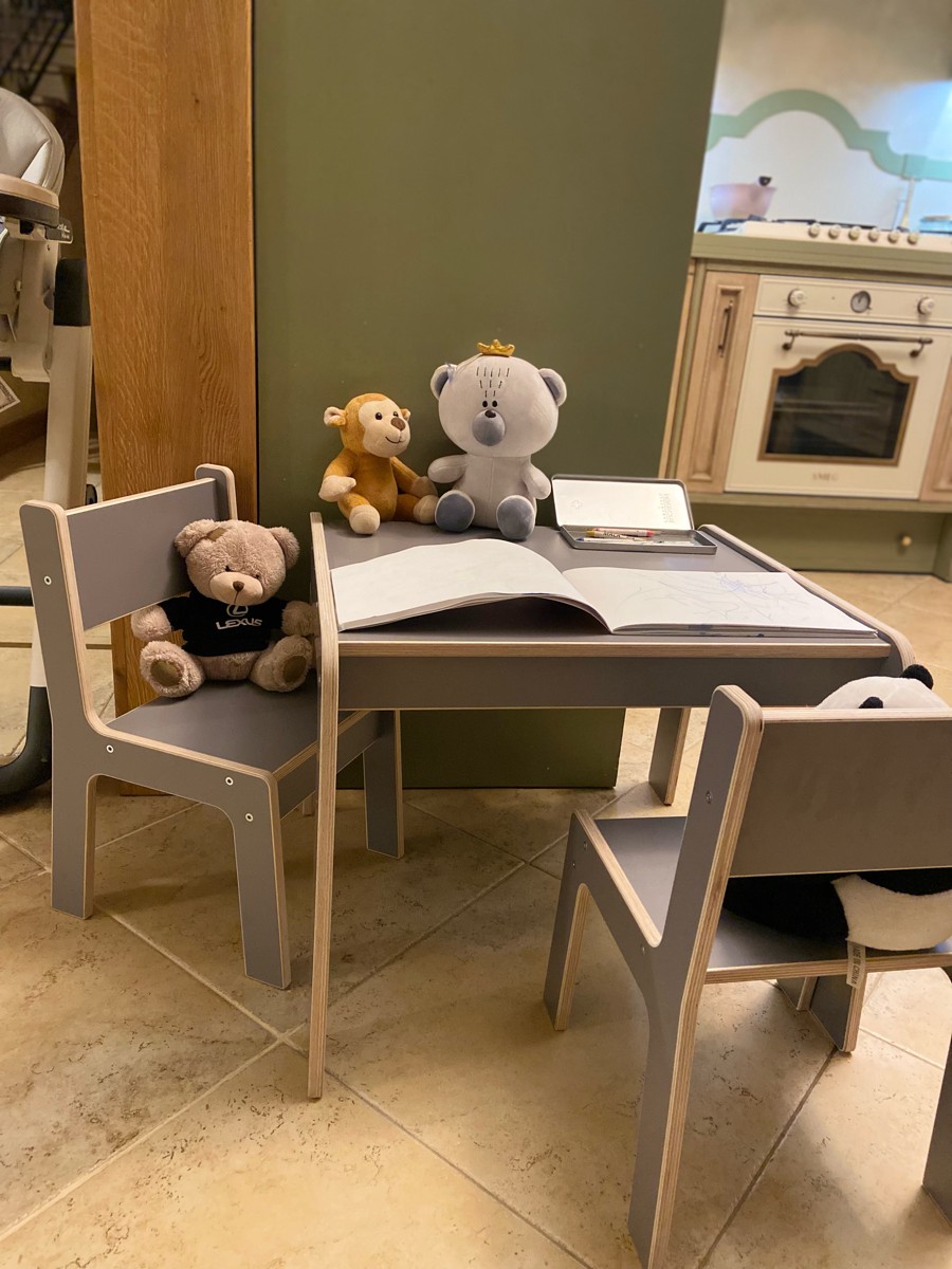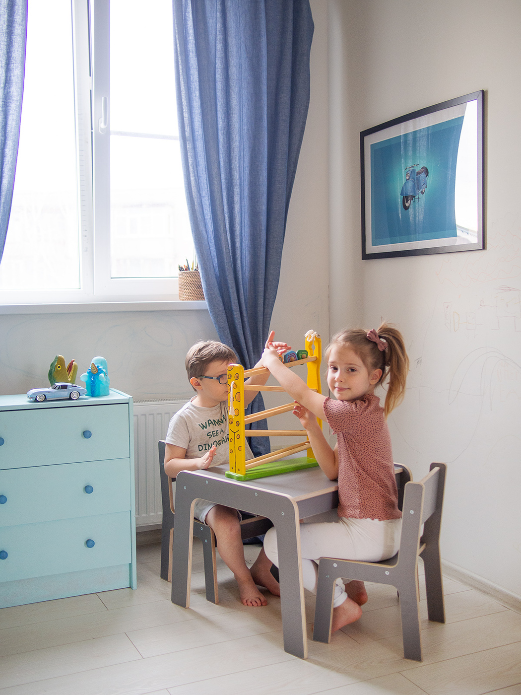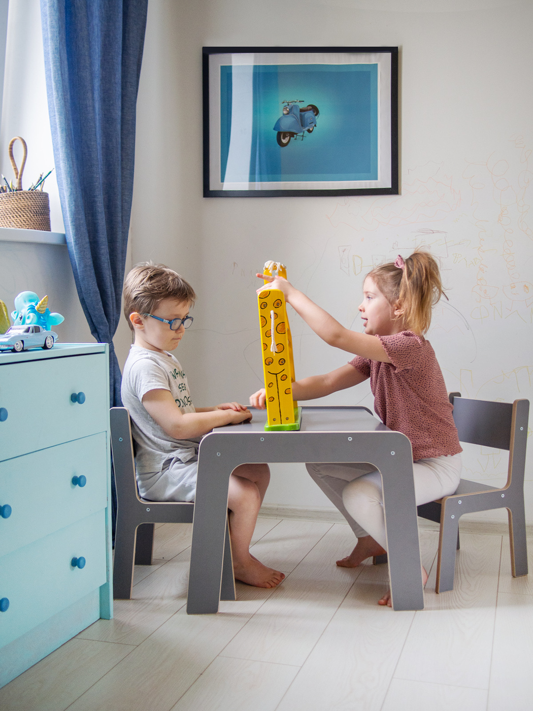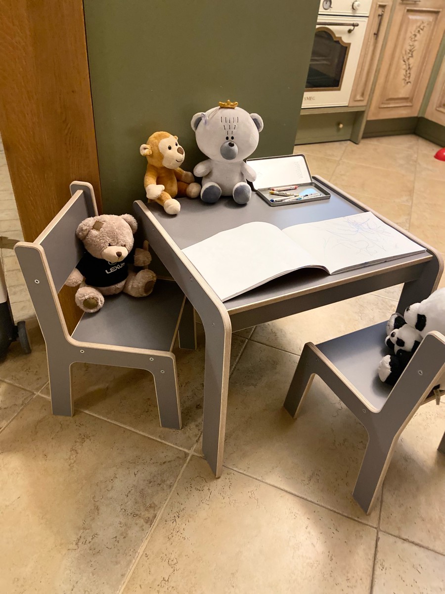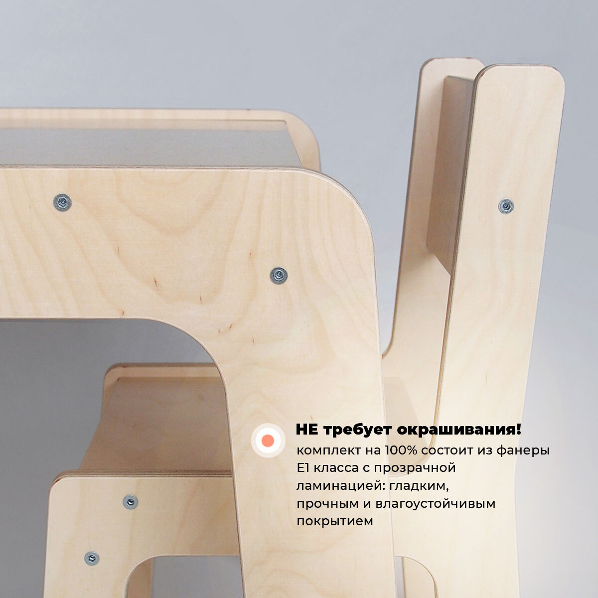 Детский стол и два стула Kiddy's Store, комплект детской мебели стол и два стула деревянный, серый