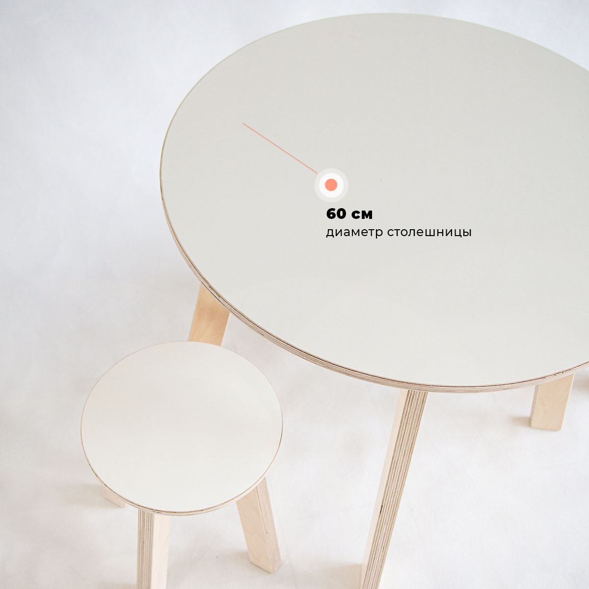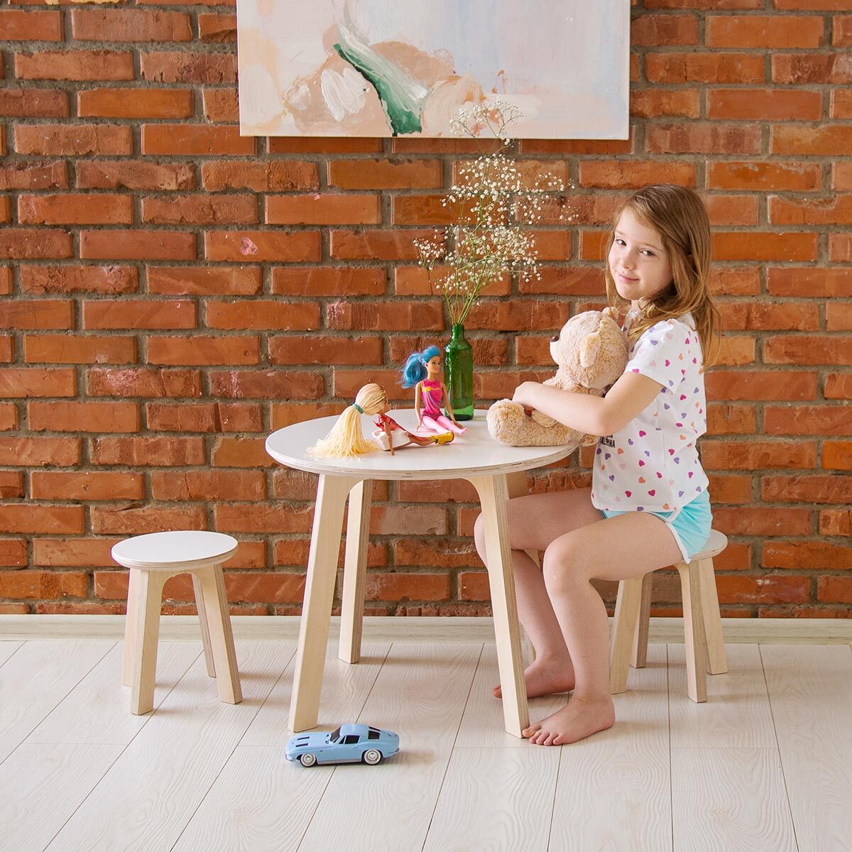 Детский круглый стол Kiddy's Store, деревянный, диаметр 60 см, натурального и белого цвета