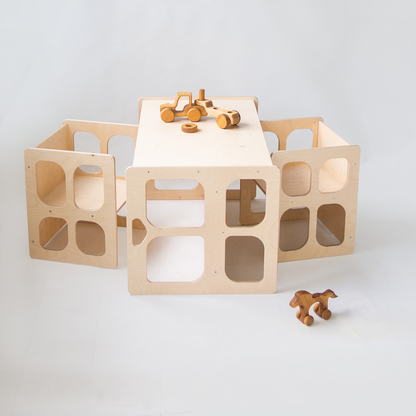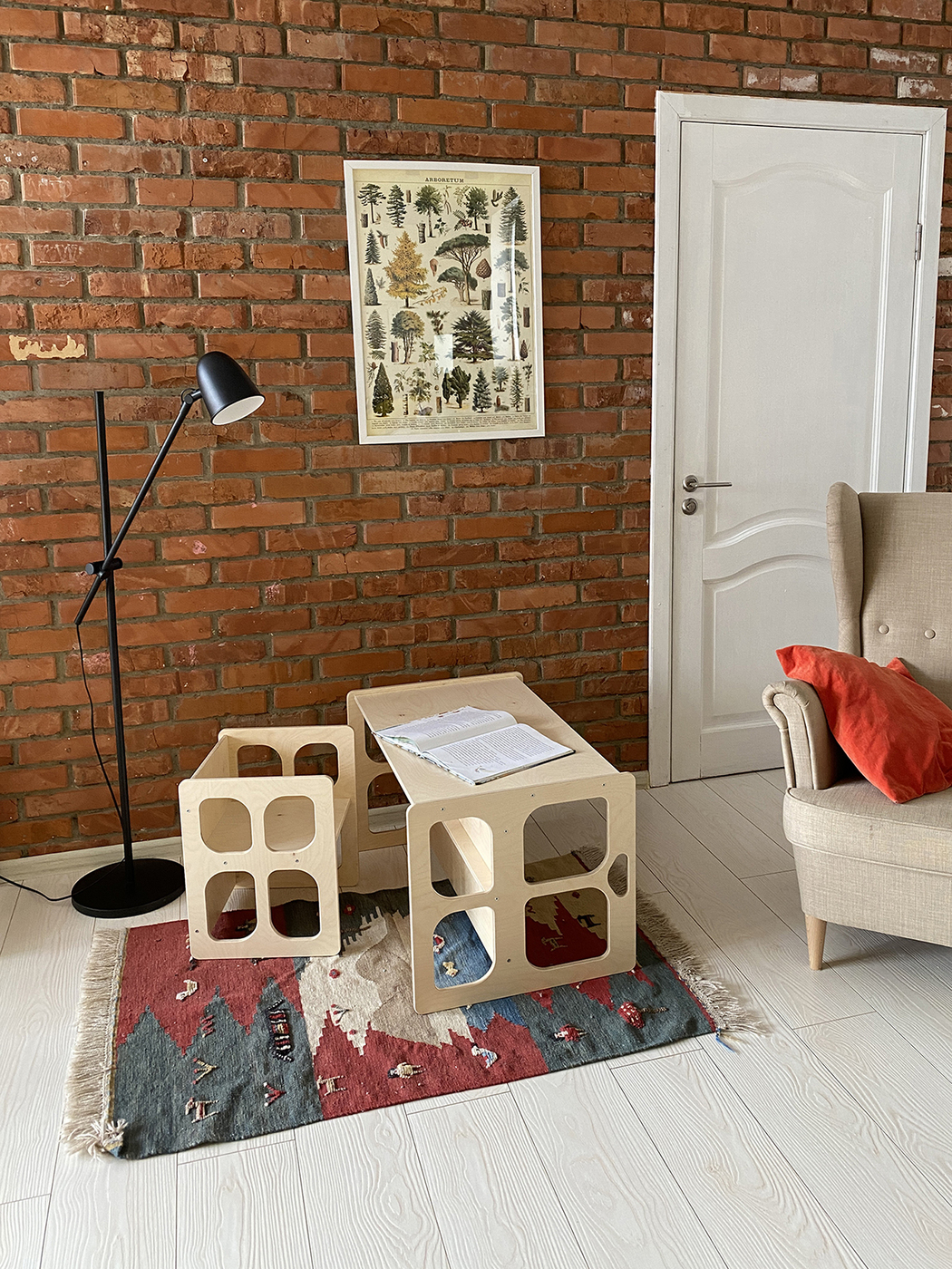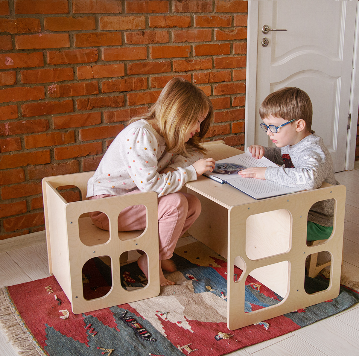 Детский стол скамья Монтессори трансформер, цвет натуральное дерево