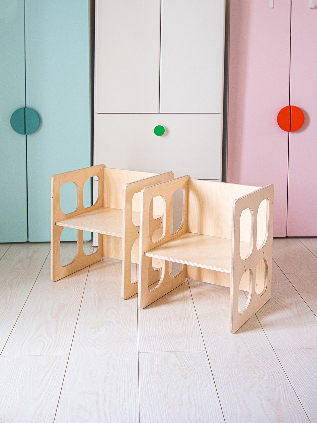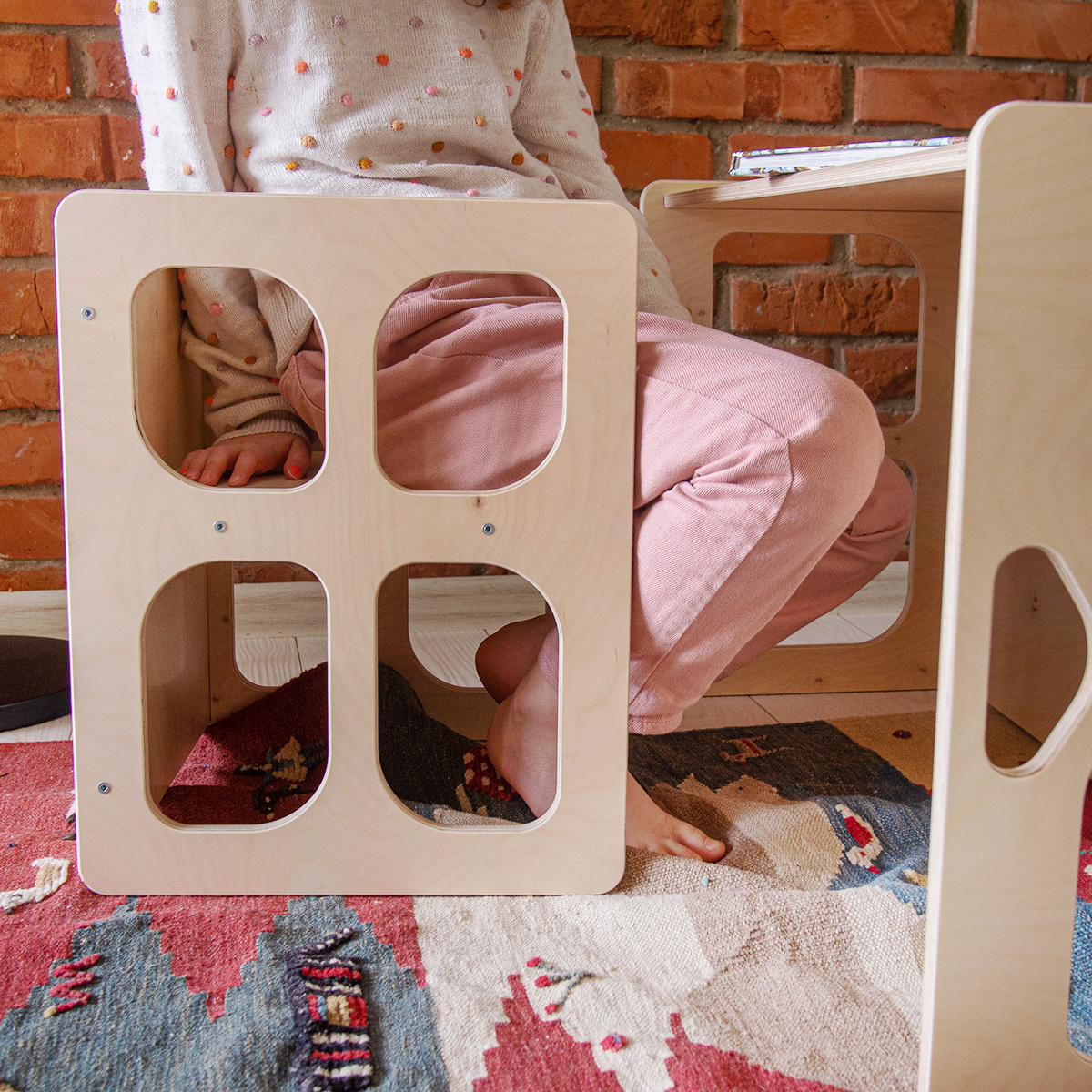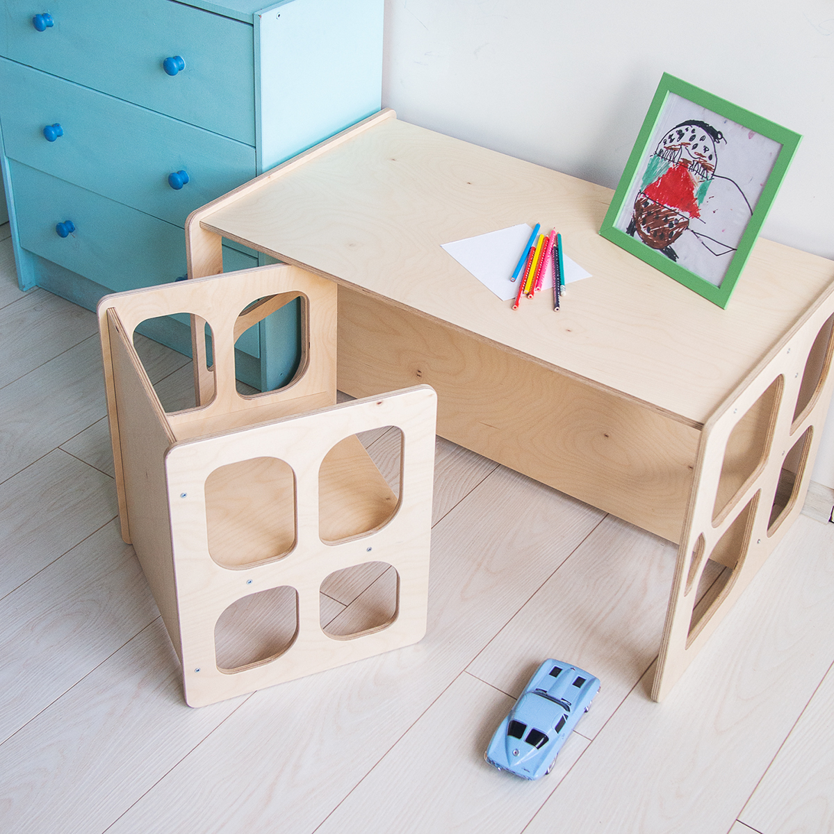 Детский стол скамья Монтессори трансформер, цвет натуральное дерево