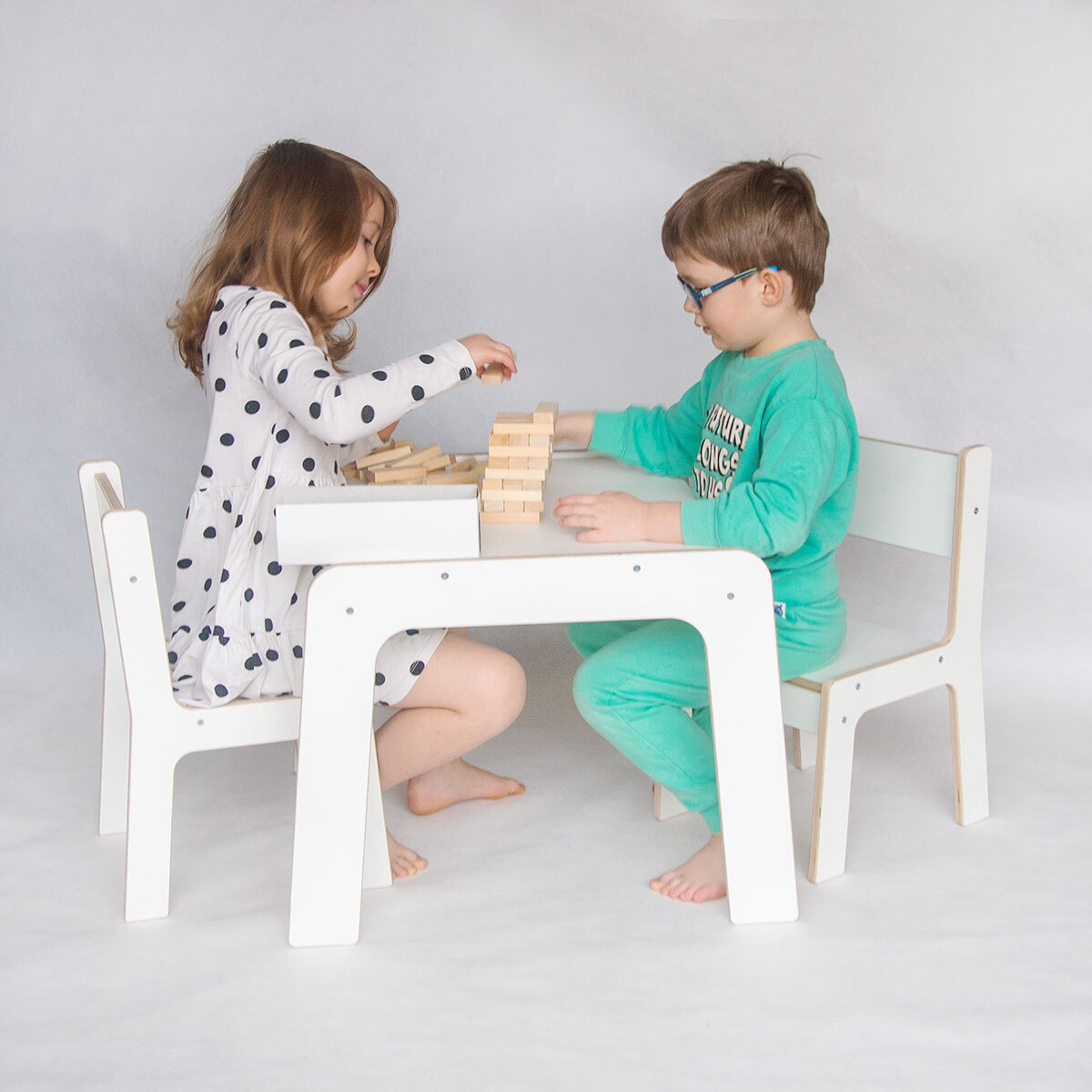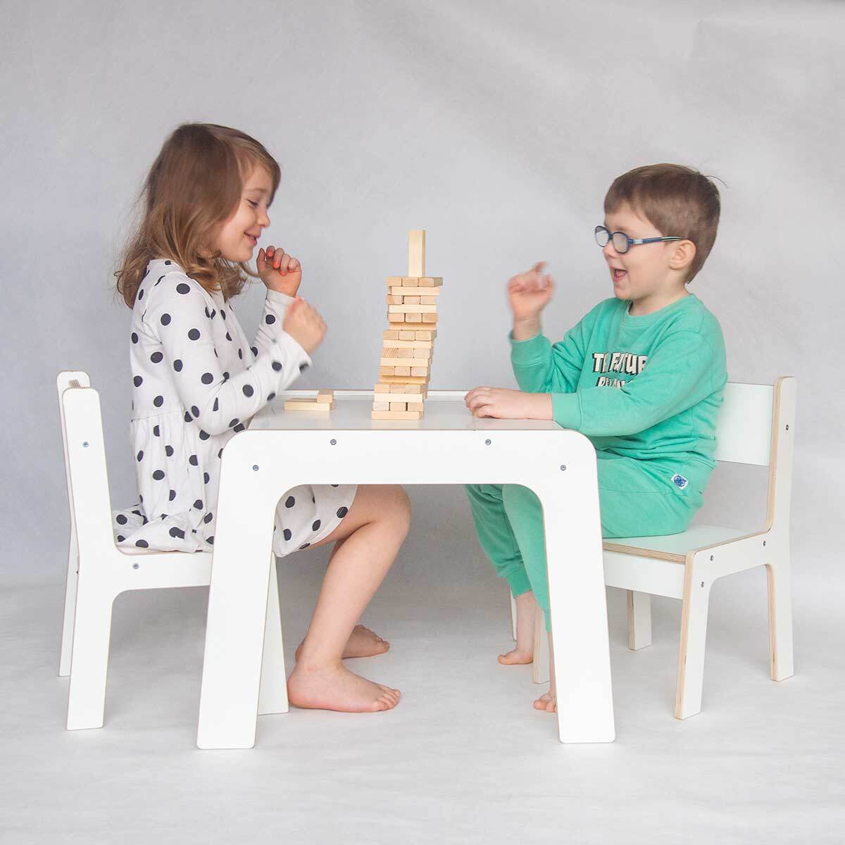Детский стол и два стула Kiddy's Store, комплект детской мебели стол и два стула деревянный, белый